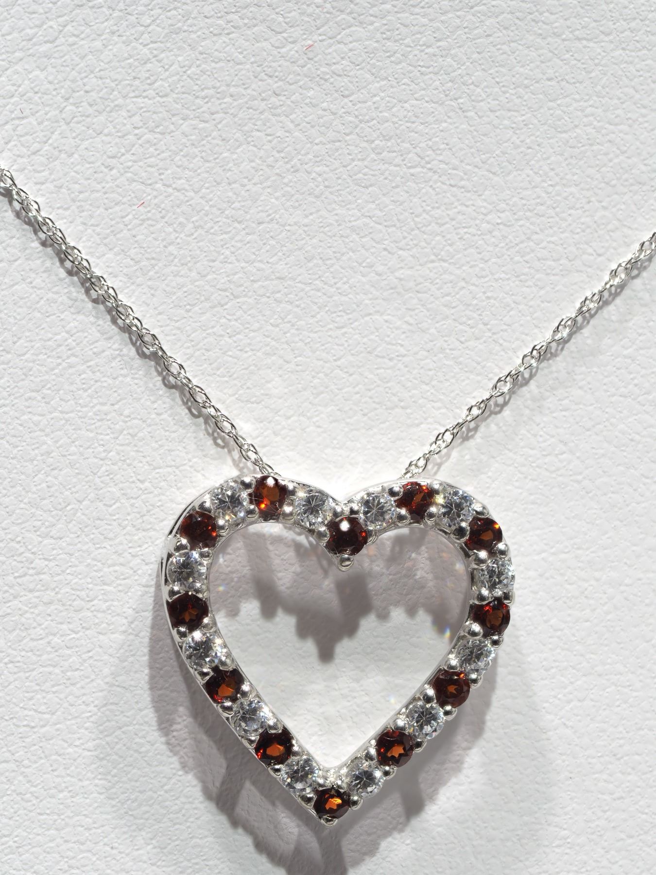 STERLING SILVER NATURAL GARNET HEART SHAPED PENDANT NECKLACE RETAIL $250