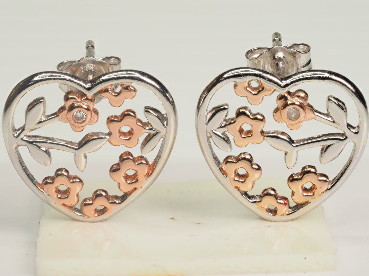 STERLING SILVER RHODIUM PLATED DIAMOND EARRINGS.