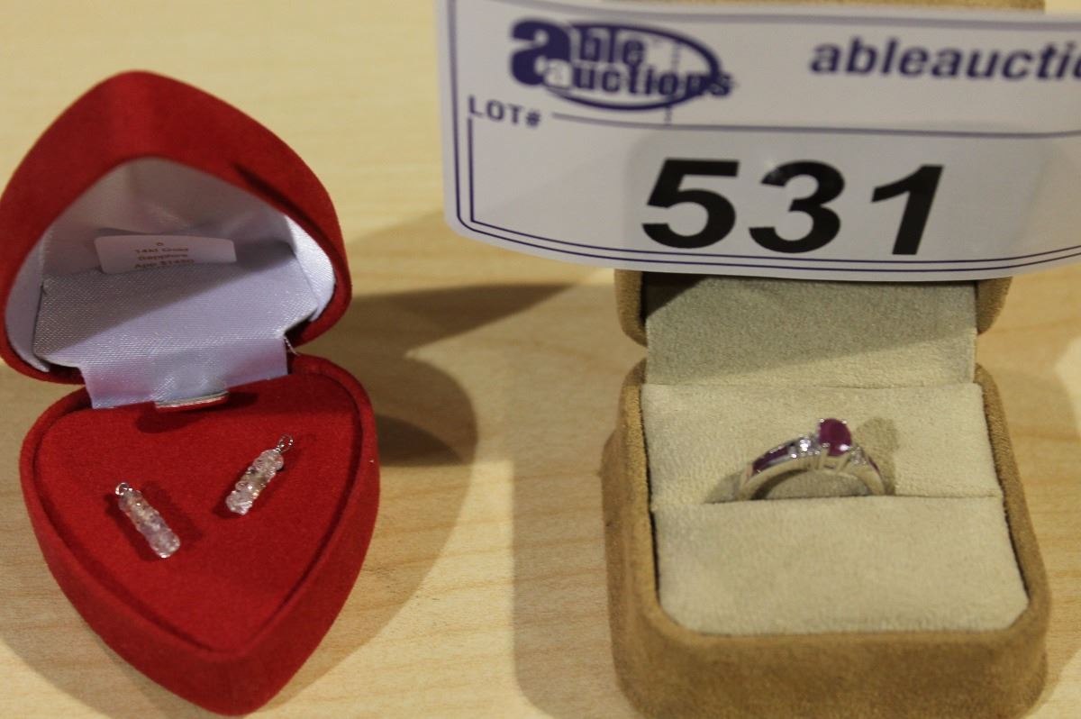 STERLING SILVER RUBY AND CUBIC ZIRCONIA RING APPRAISED $525,14KT GOLD SAPPHIRE EARRINGS APPRAISED $ 1450