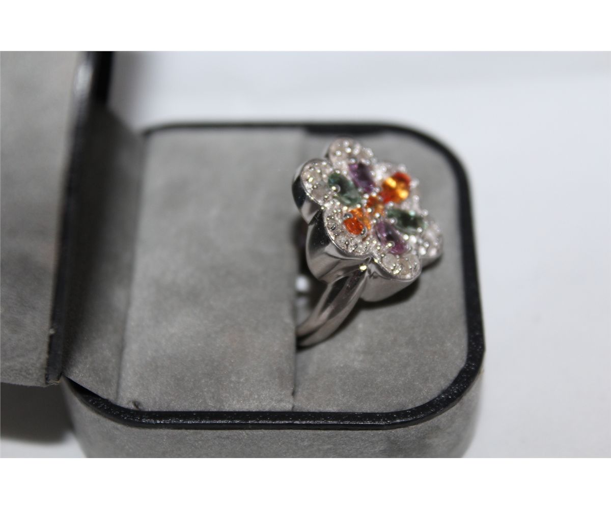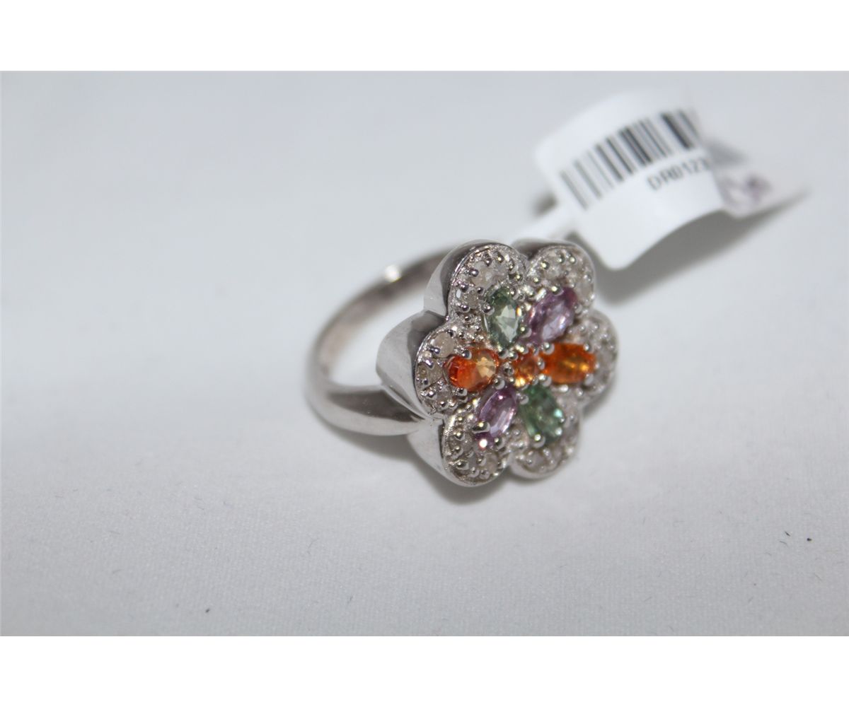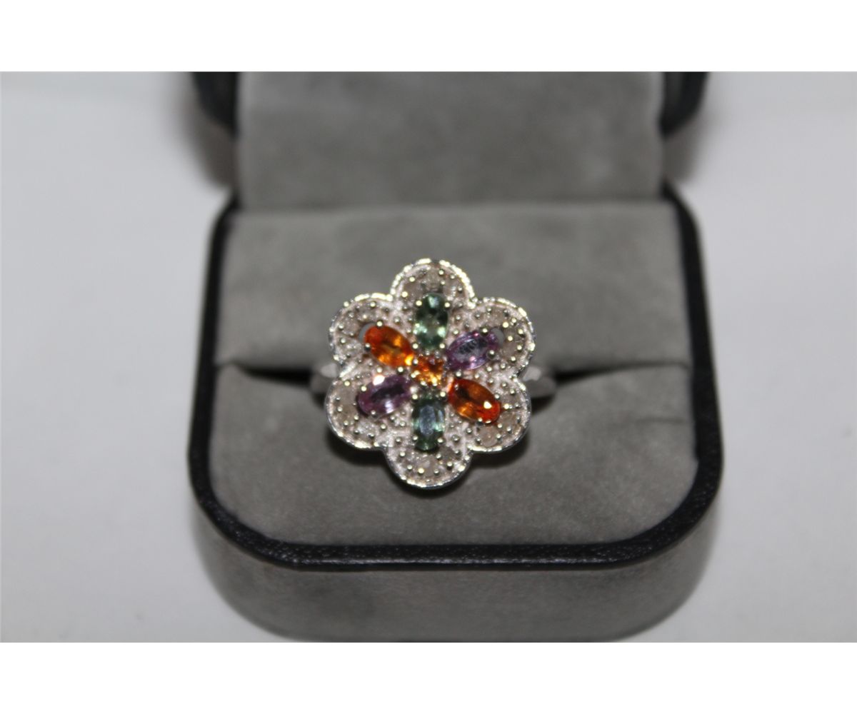 STERLING SILVER SAPPHIRE DIAMOND RING. STAMPED 925. GEMSTONE: NATURAL SAPPHIRE 2.80 CARAT AND NATURAL DIAMOND: 0.70 CARAT CLARITY: MODERATELY INCLUDED COLOUR: MULTI. ITEM WEIGHT 6.83 GRAMS INCL. GEMOLOGIST APPRAISAL