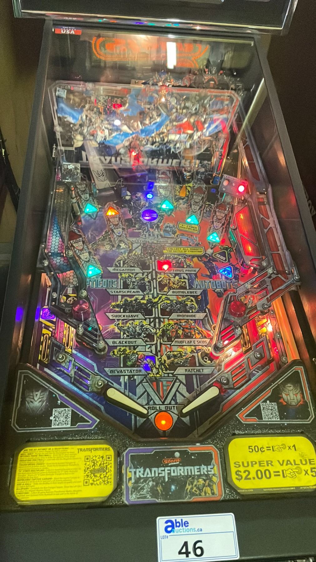 STERN PINBALL INC. / HASBRO TRANSFORMERS COIN OPERATED ARCADE PINBALL IN STOCK CABINET