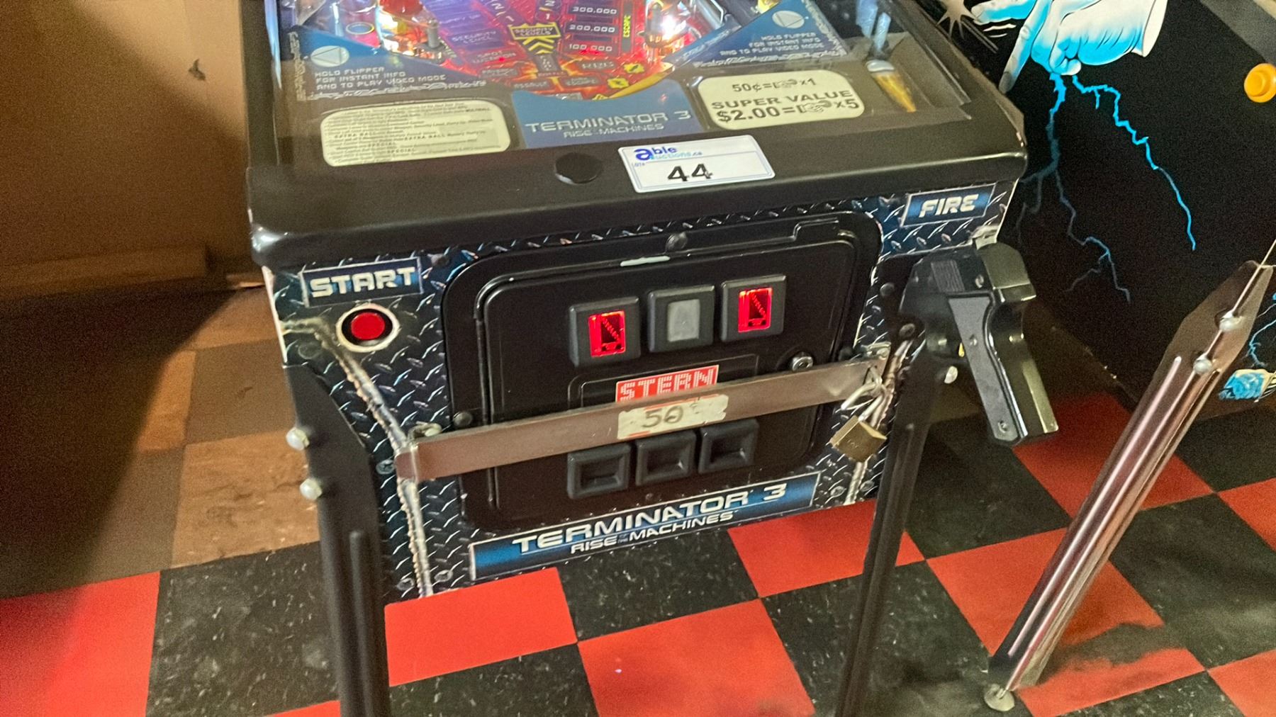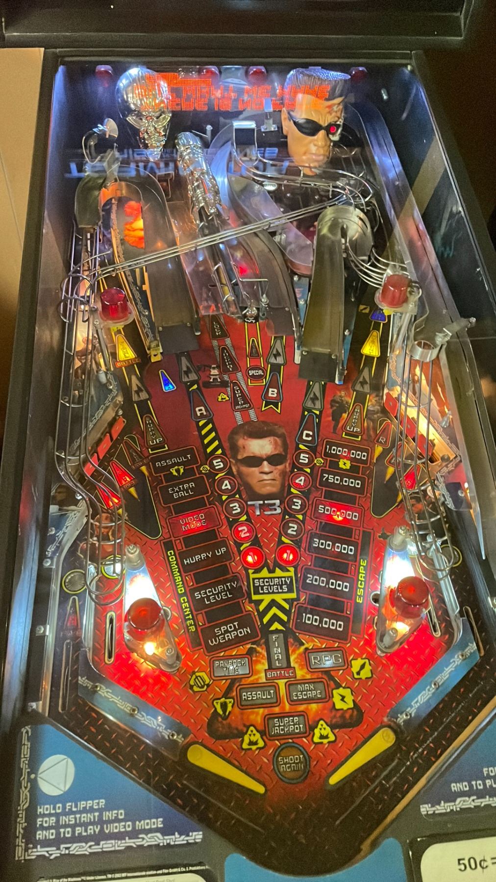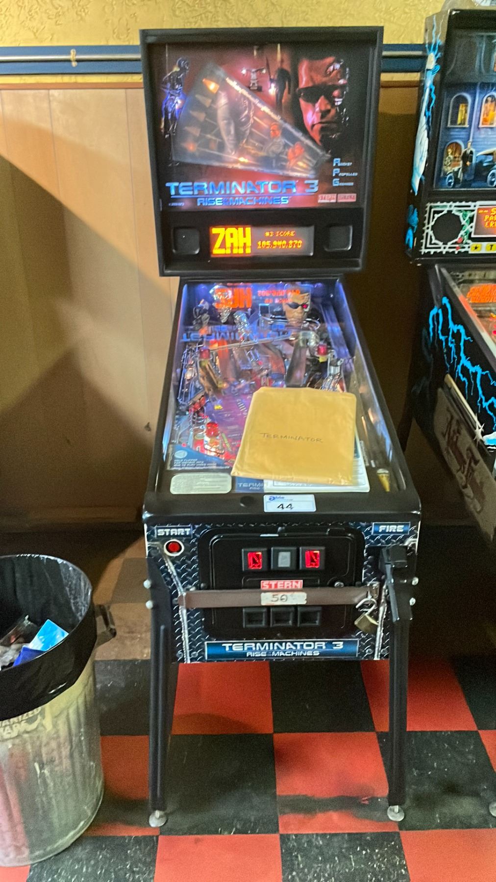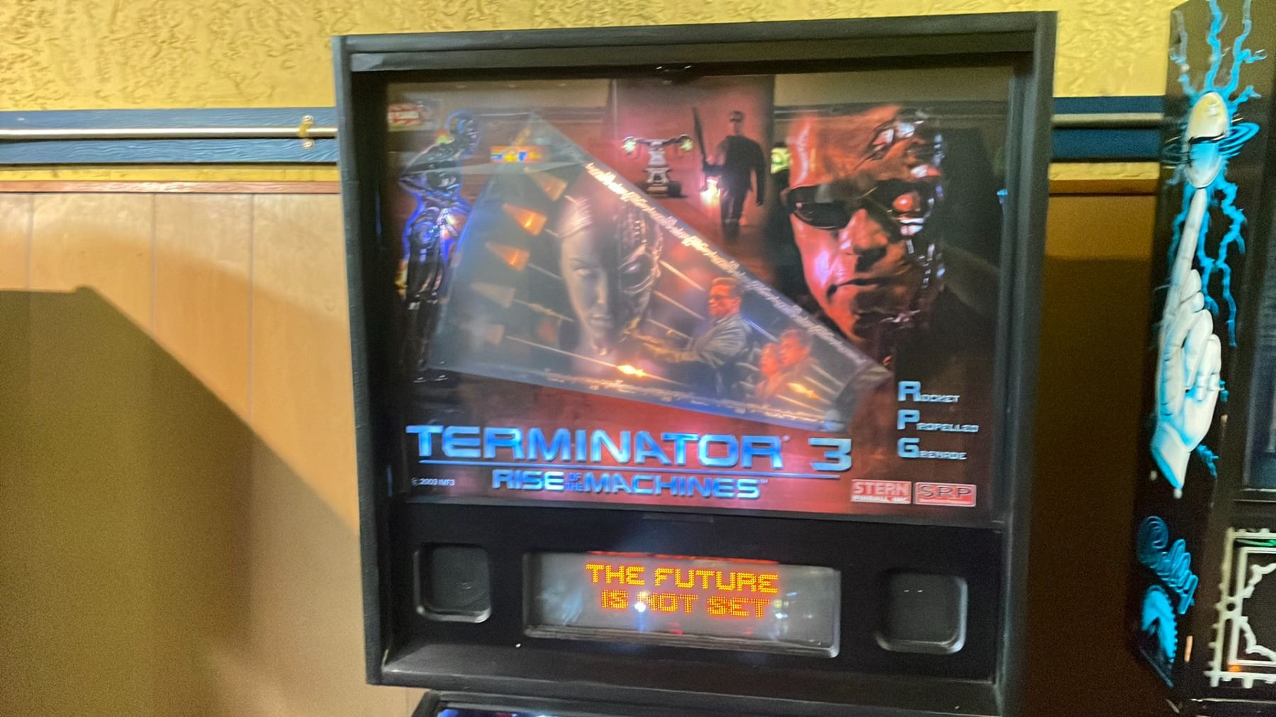 STERN PINBALL INC. TERMINATOR 3 RISE OF THE MACHINES COIN OPERATED ARCADE PINBALL IN STOCK CABINET WITH MANUALS