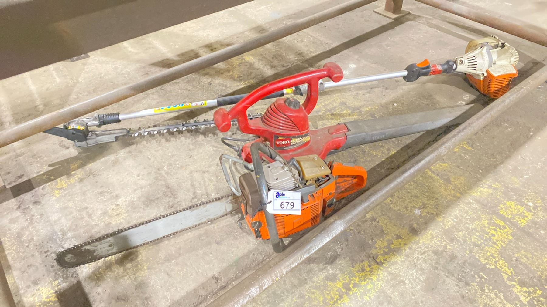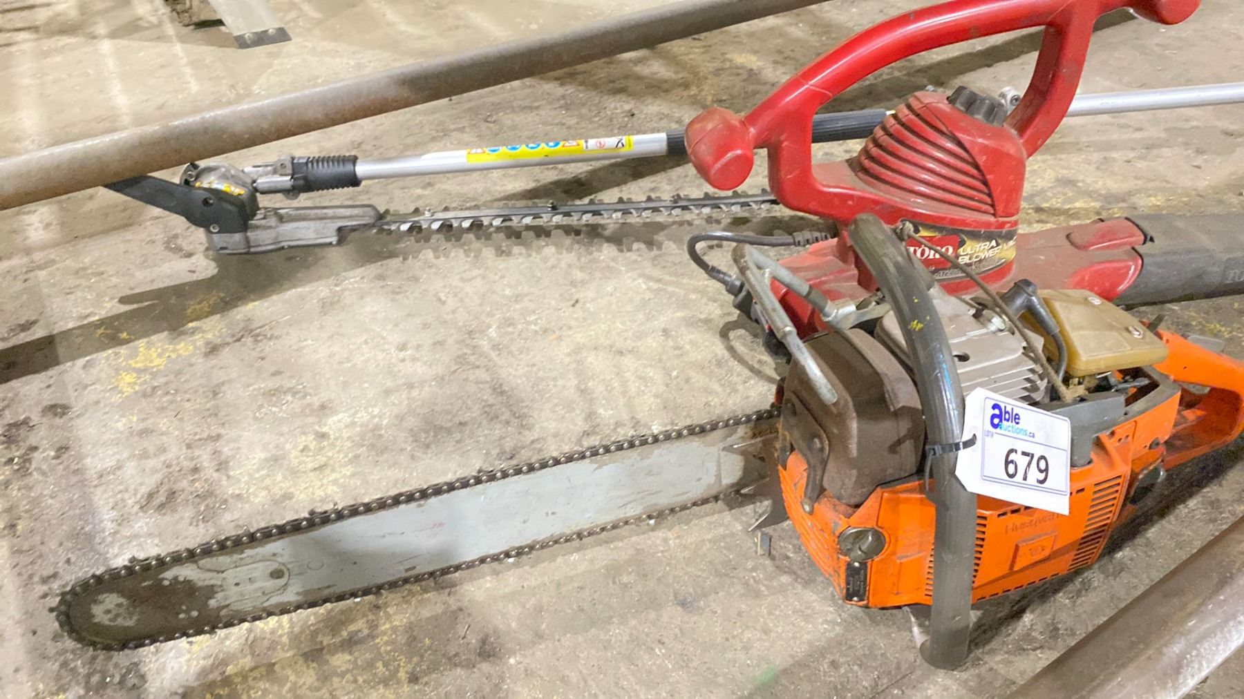 STIHL KM 50R GAS POWERED HEDGE TRIMMER, HUSQVARNA CHAINSAW **MISSING TOP COVER ** & TORO ULTRA ELECTRIC BLOWER
