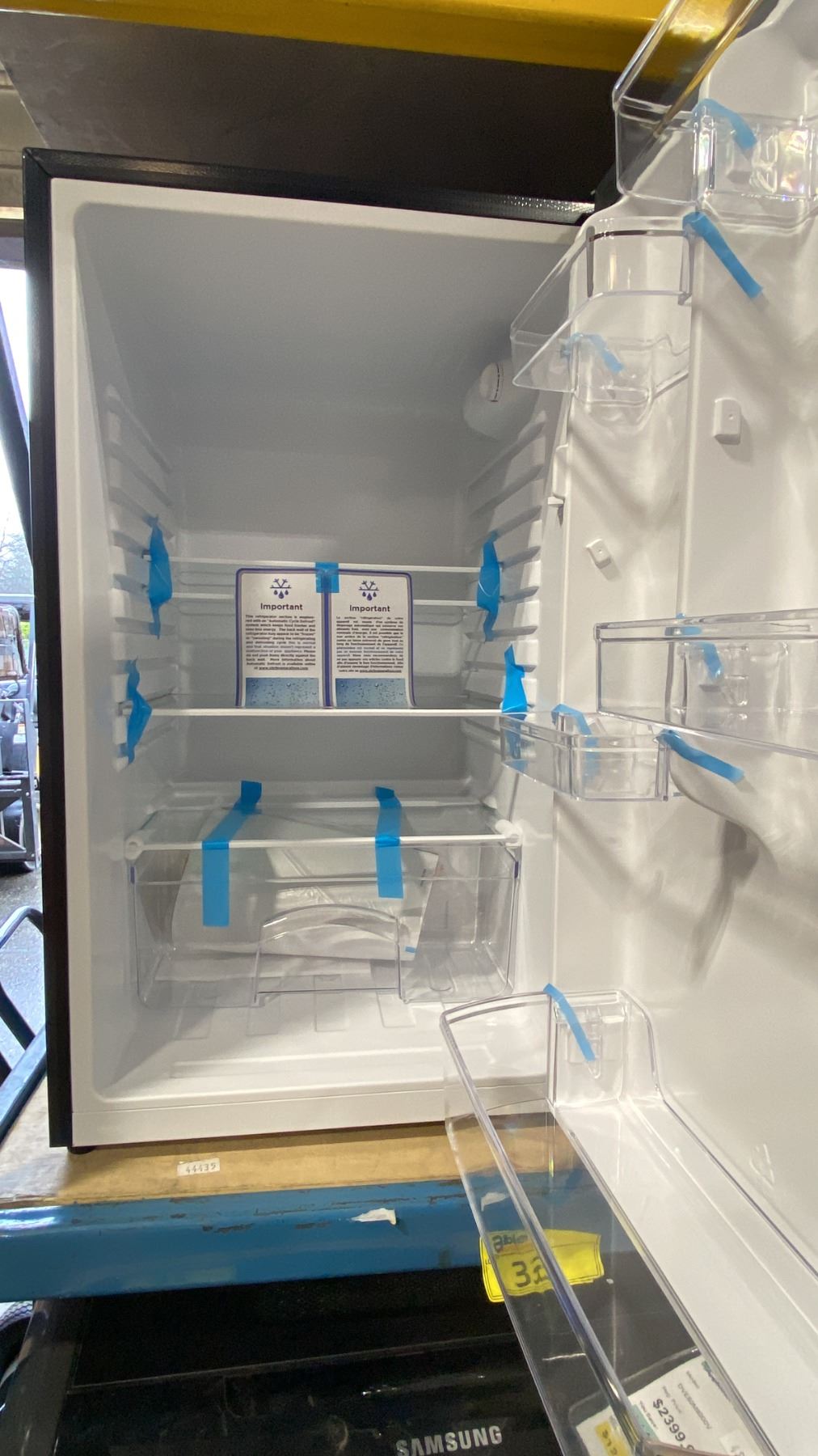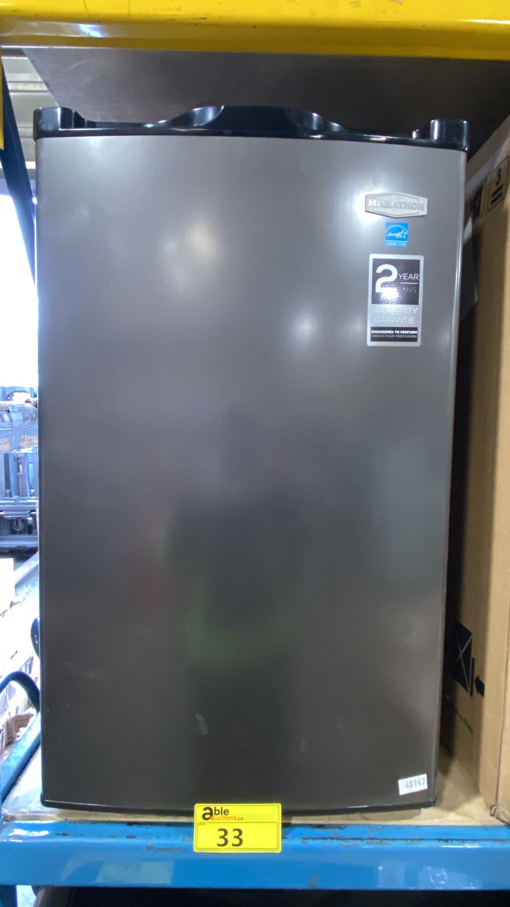 STIRLING MARATHON MODEL MAR46BLS. BLACK STEEL 4.4 CU. FT. DELUXE COMPACT BAR REFRIGERATOR SN 01250601000467 RETAIL PRICE $399.00