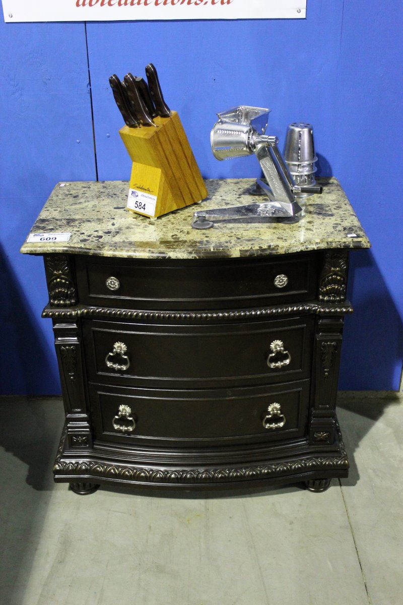 STONE CRAFTED TOP 3 DRAWER BEDSIDE NIGHT TABLE