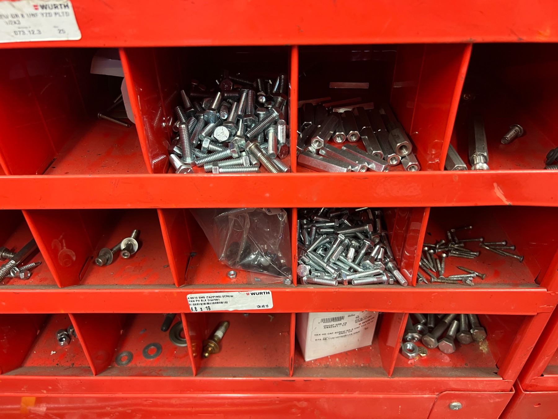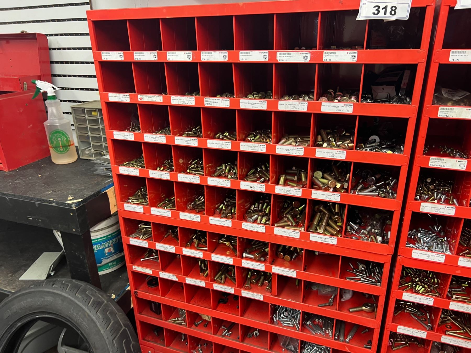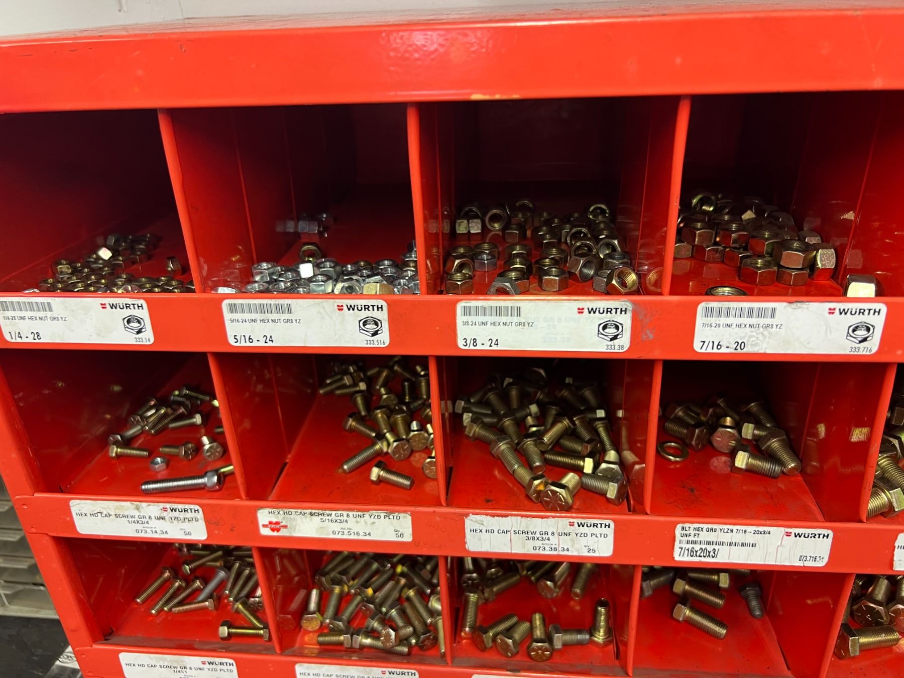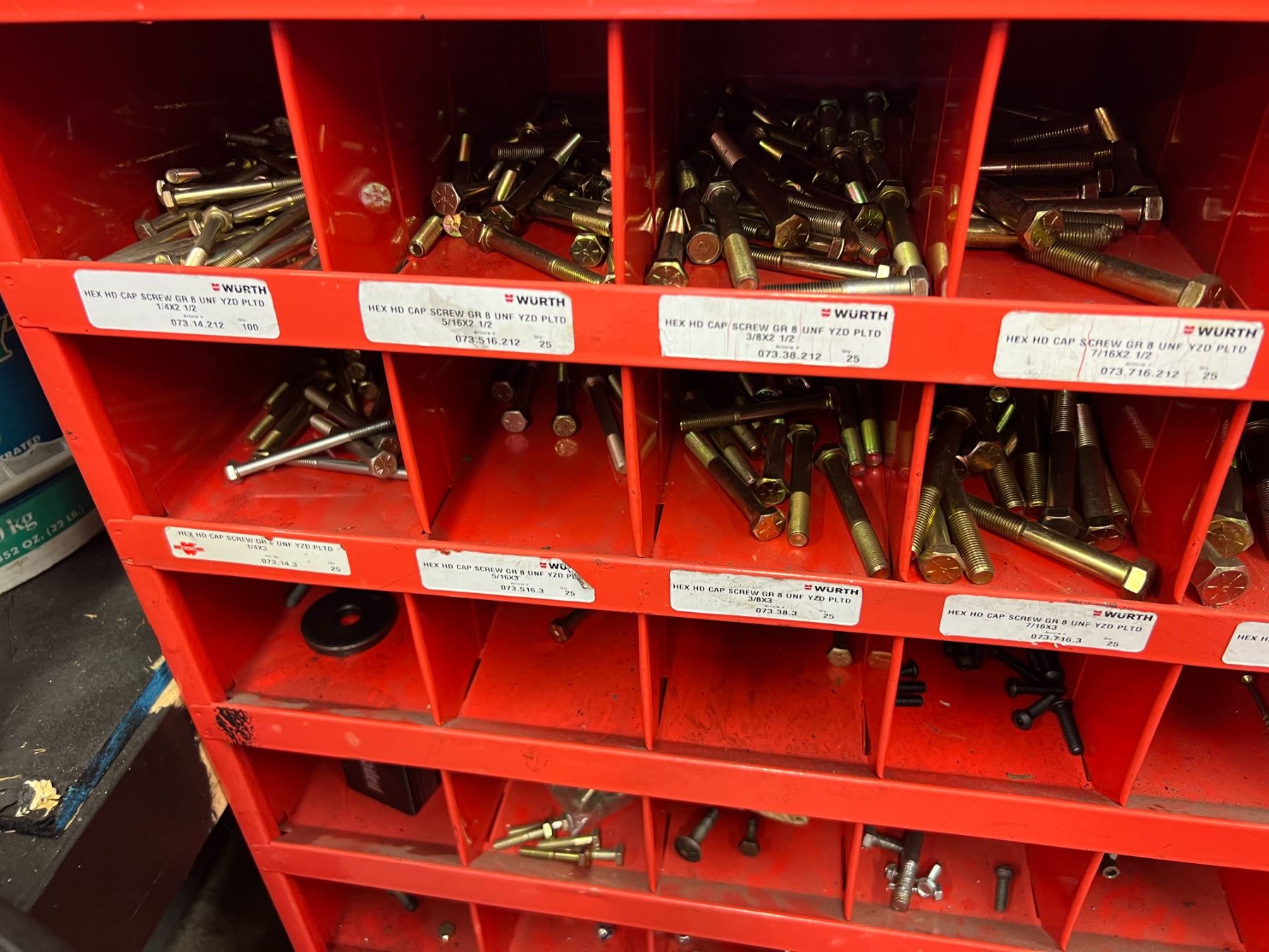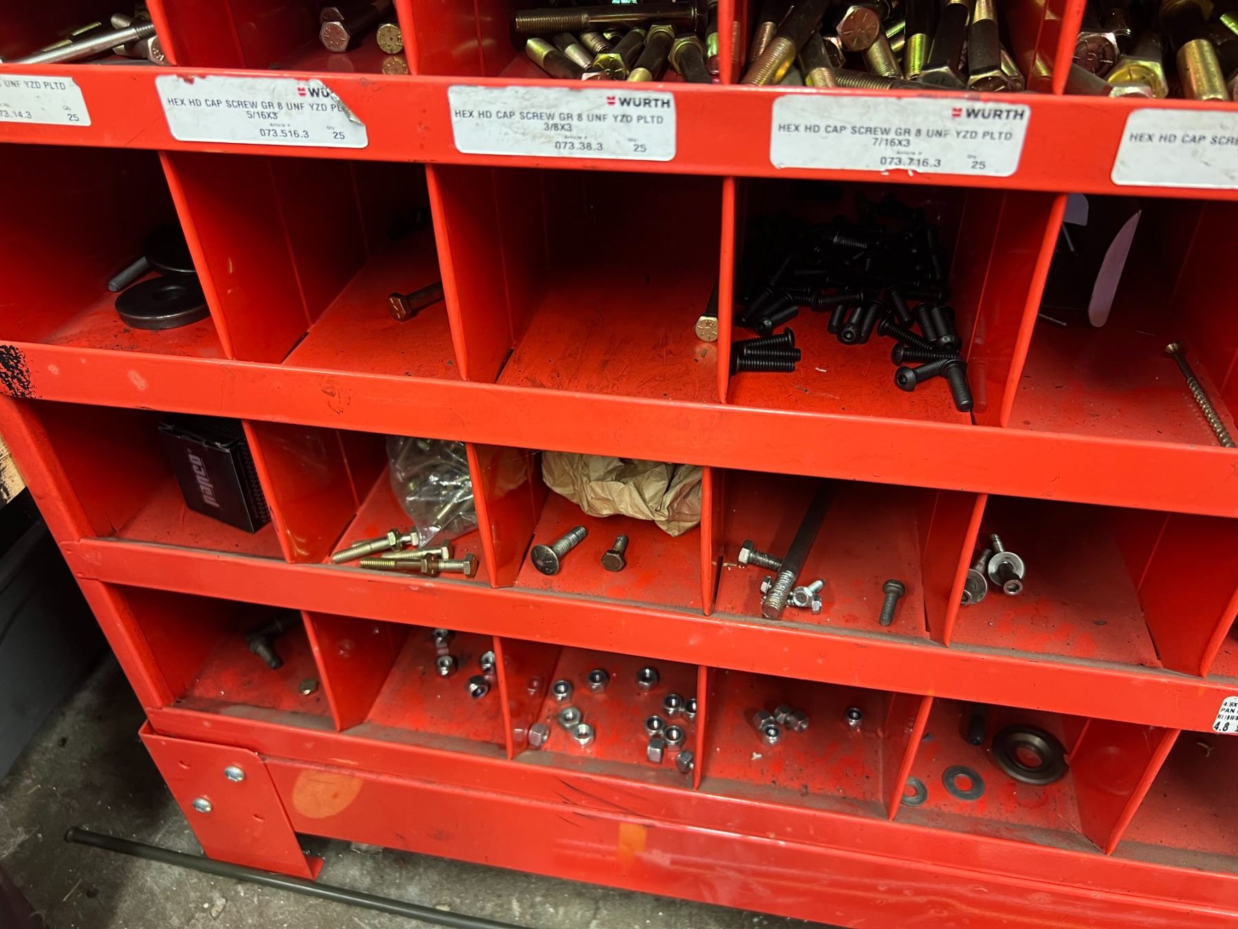 STORAGE BIN WITH LARGE ASSORTMENT OF GRADE 8 NUTS & BOLTS (34"W X 54"H)