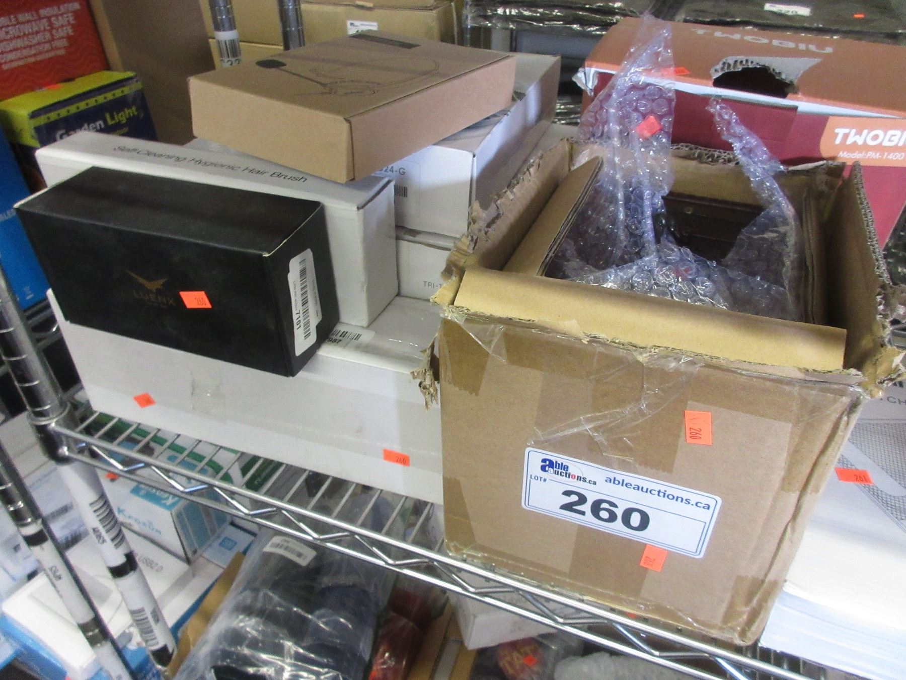 STORAGE BOX/HOT AIR POPCORN POPPER/TELEPHONE HEADSET/KING SIZE HEATING PAD/LUENX GLASSES/SELF CLEANING HAIR BRUSH/RETRACTABLE CORD REEL/ETC B1