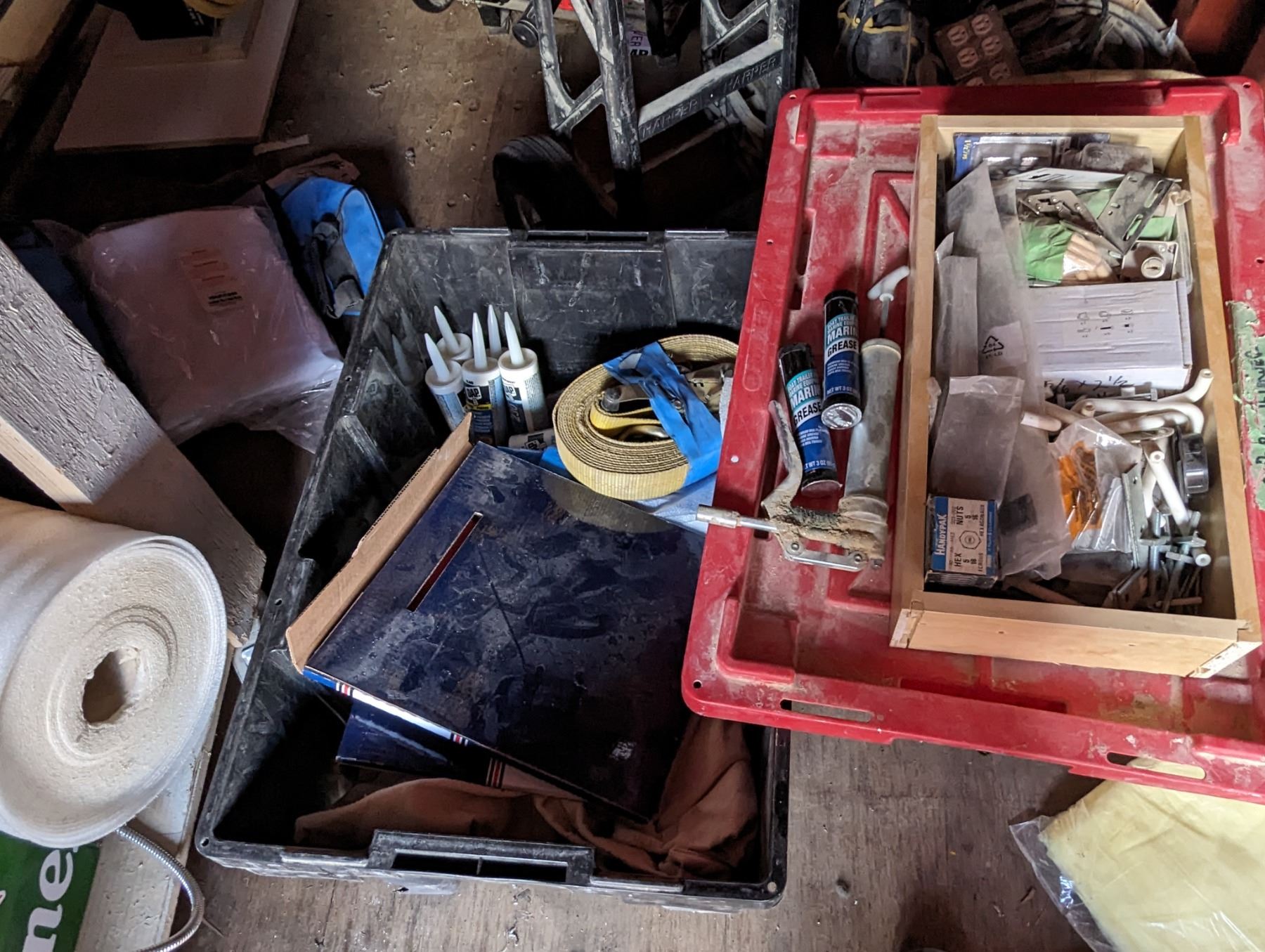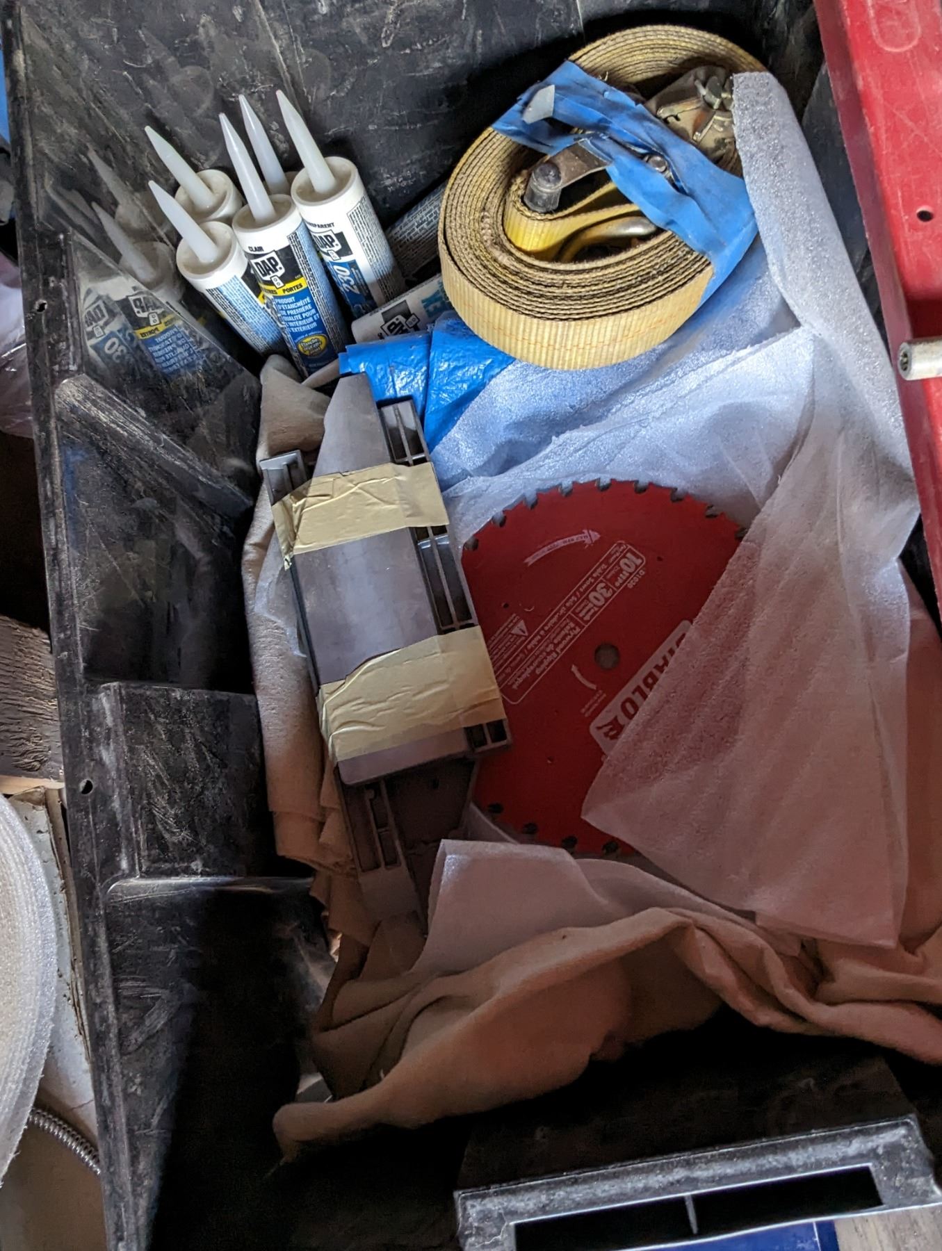 STORAGE TUB - USED SAW BLADES, DROP SHEETS, DAP & TARP ETC