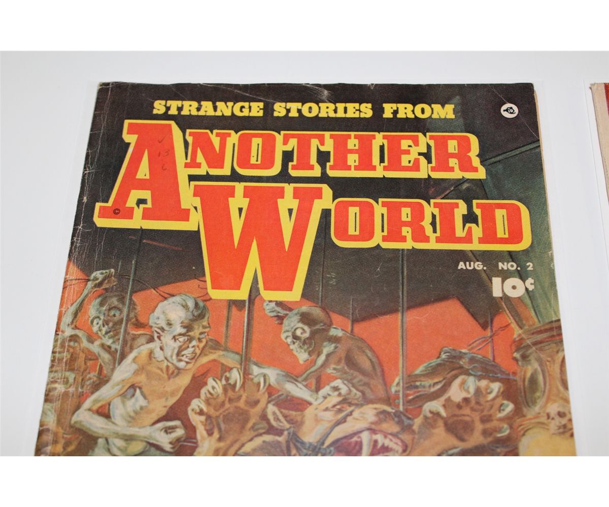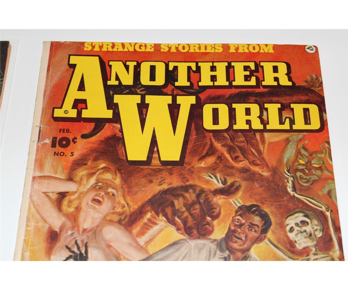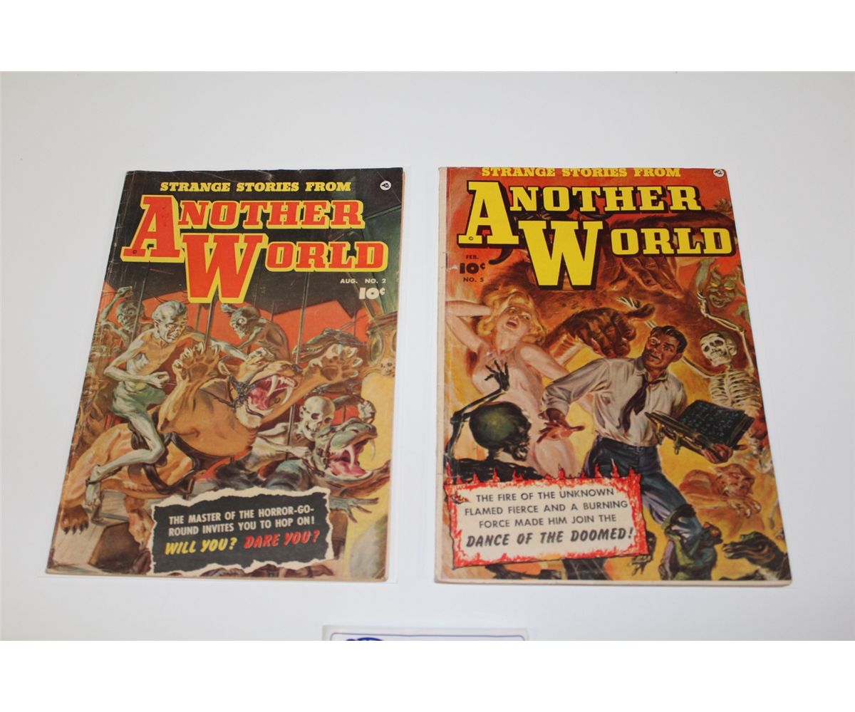 STRANGE STORIES FROM ANOTHER WORLD #2 & 5 (1952-53) EXPLICIT PRECODE HORROR, BOTH FEATURE AWESOME SAUNDERS PAINTED COVERS. VERY SHARP MID GRADE COPIES, TIGHT & SUPPLE. BEAUTIFUL BOOKS!