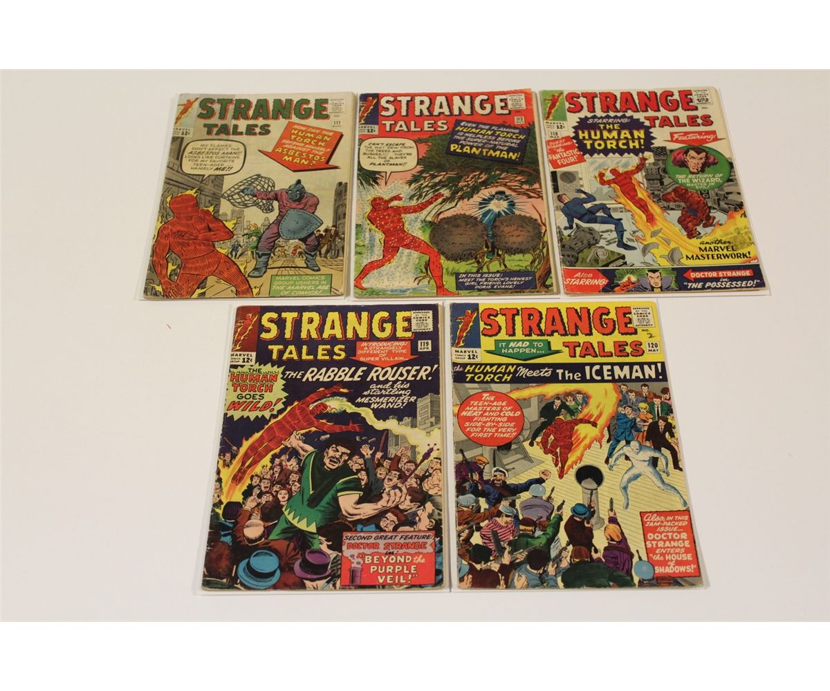 STRANGE TALES #111, 113, 118, 119 & 120 (1963-64) 5 SILVER AGE CLASSICS. #111 - 2ND APP. DR. STRANGE LOWER MID TO MID GRADE AVERAGE, GLOSSY, TIGHT & SUPPLE. VERY NICE BOOKS!