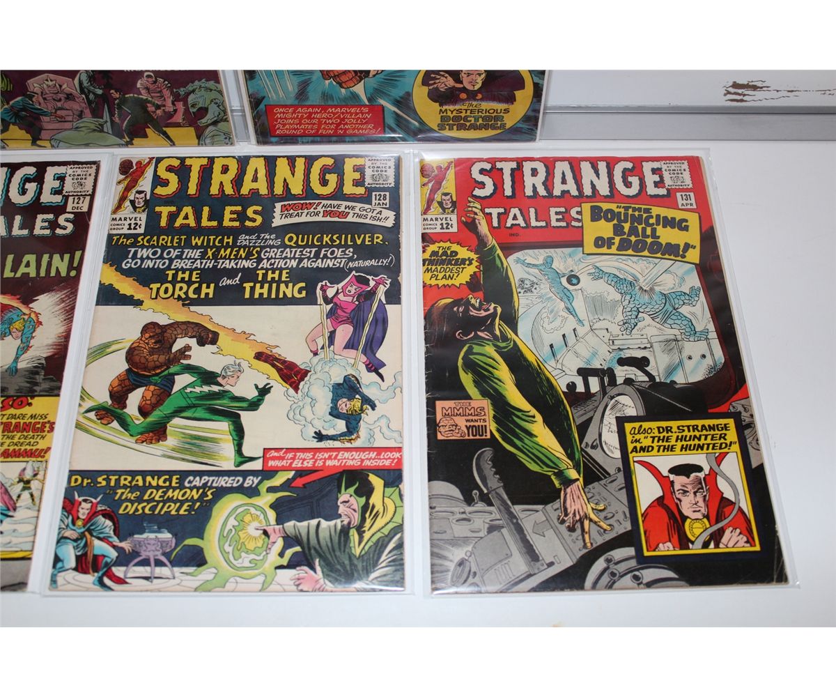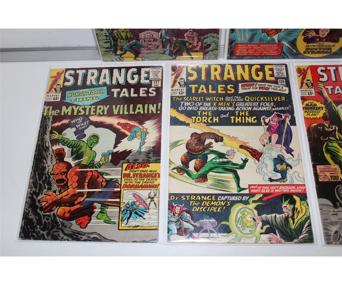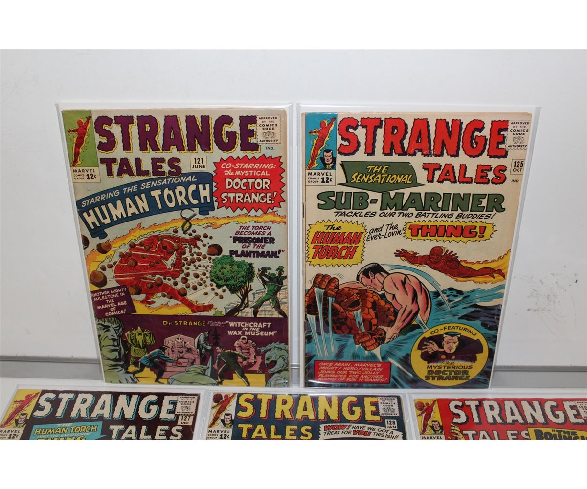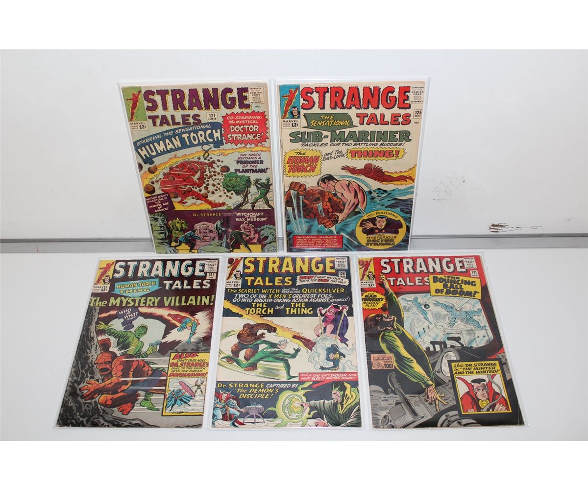 STRANGE TALES #121, 125, 127-128 & 131 (1964-65) #5 ISSUE SILVER AGE RUN. #125 - THING VS SUB-MARINER. LOWER MID TO MID GRADE AVERAGE. GLOSSY, TIGHT, & SUPPLE. ALL COMPLETE.