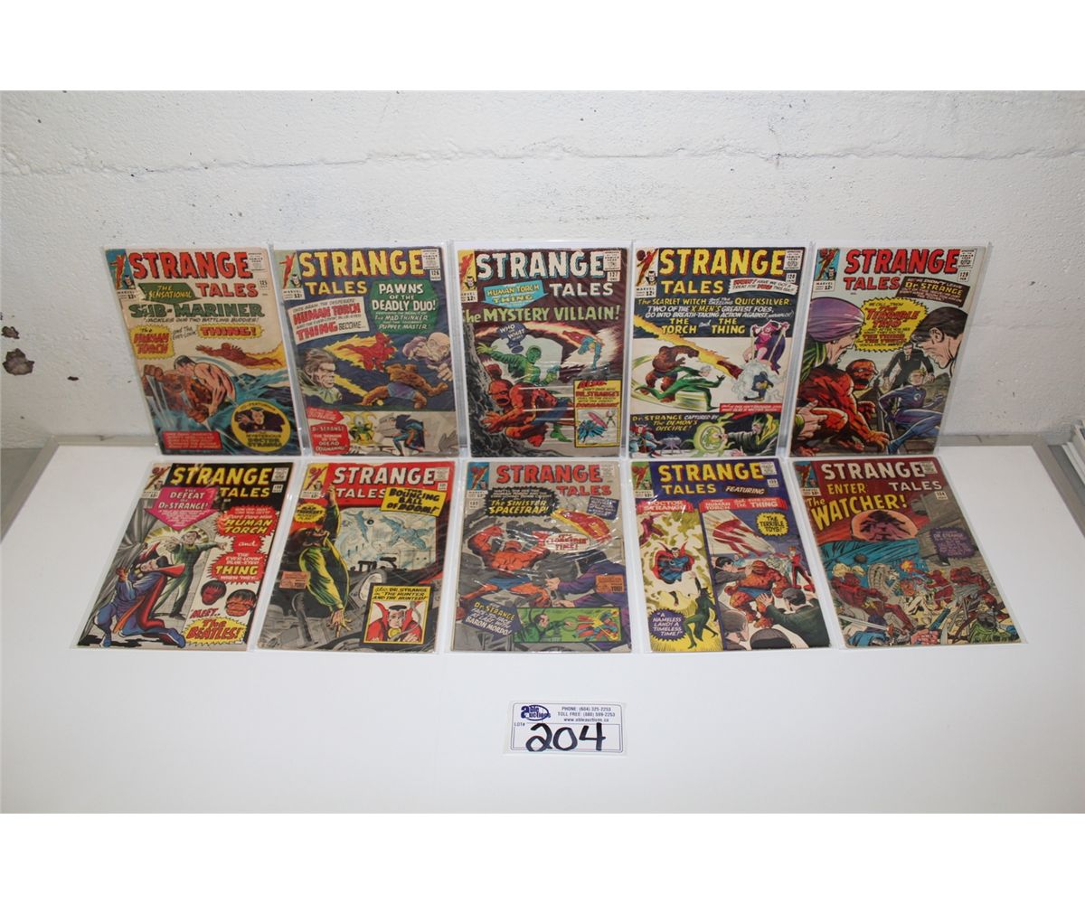 STRANGE TALES #125-134 (1964-65) #125- TORCH BATTLES SUB-MARINER. 10 CONSECUTIVE EARLY MARVEL SILVER AGE CLASSICS. MIX GRADE, LOW TO HIGHER MID GRADE, COMPLETE, SOLID RUN!