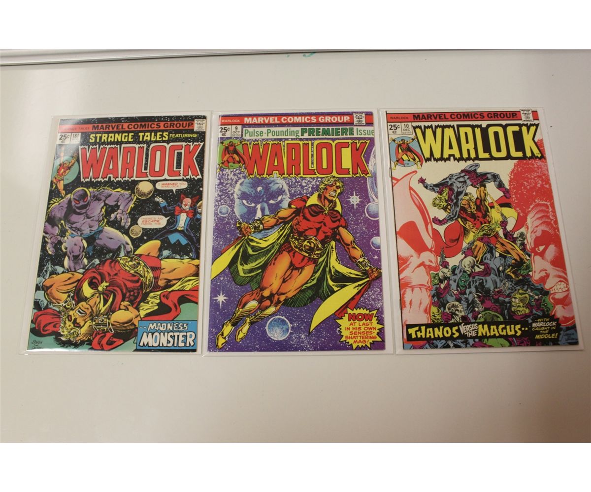 STRANGE TALES & WARLOCK. HIGH GRADE LOT. JIM STARLIN'S RED HOT WARLOCK SPACE ODDYSEY, COMPLETE (THANOS). THIS SET IS LOADED WITH 1ST APPEARANCES. #7 (DEATH OF WARLOCK) HIGH STRANGE TALES #178-181 & WARLOCK #9-15, INCLUDED IS AVENGERS ANNUAL. #7 (DEATH OF WARLOCK) HIGH GRADE, INVESTMENT LOT.