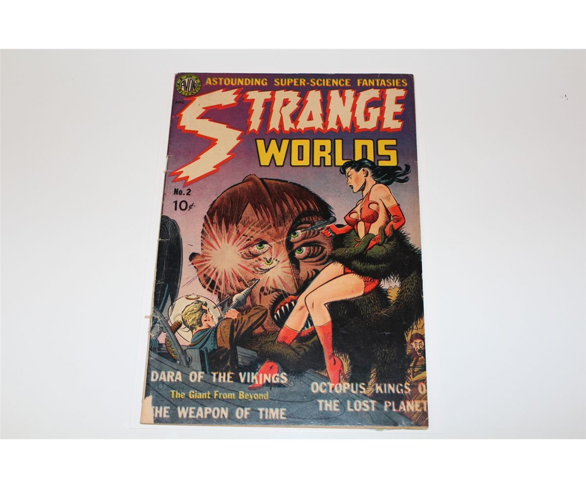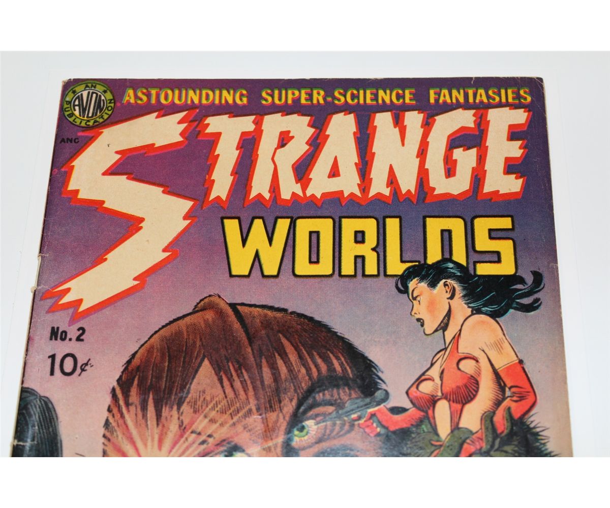 STRANGE WORLDS #2 (1951) (AVON) CLASSIC SCI-FI/ FANTASY PRECODE FEATURING WOOD ART. 'CROM THE BARBARIAN STORY' - USED IN SOTI INJURY TO EYE PANEL. LOWER MID GRADE COVER & CF ATTACHED, TIGHT & SUPPLE.