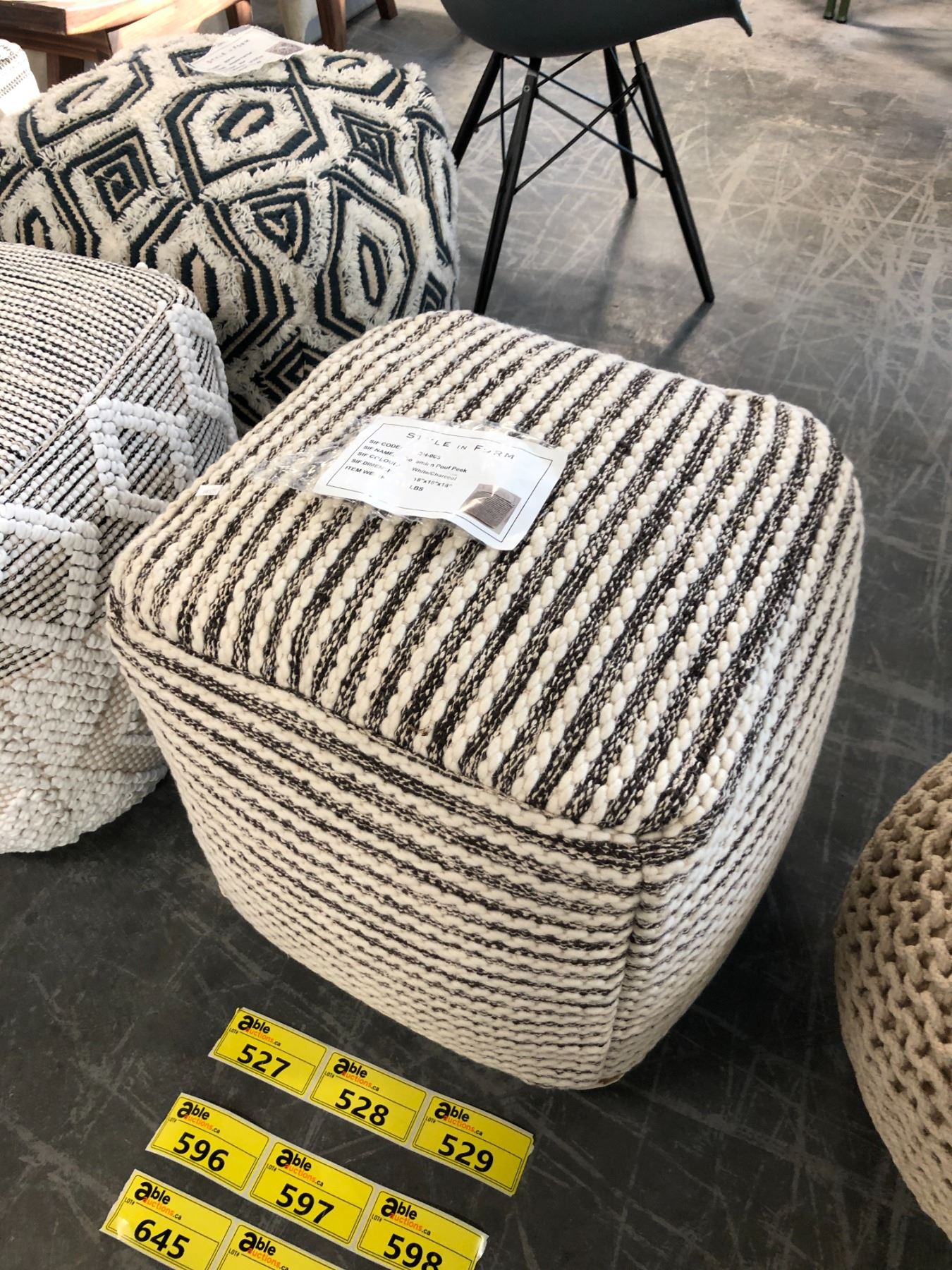STYLE IN FORM BOHEMIAN WHITE/CHARCOAL PEEK POUF