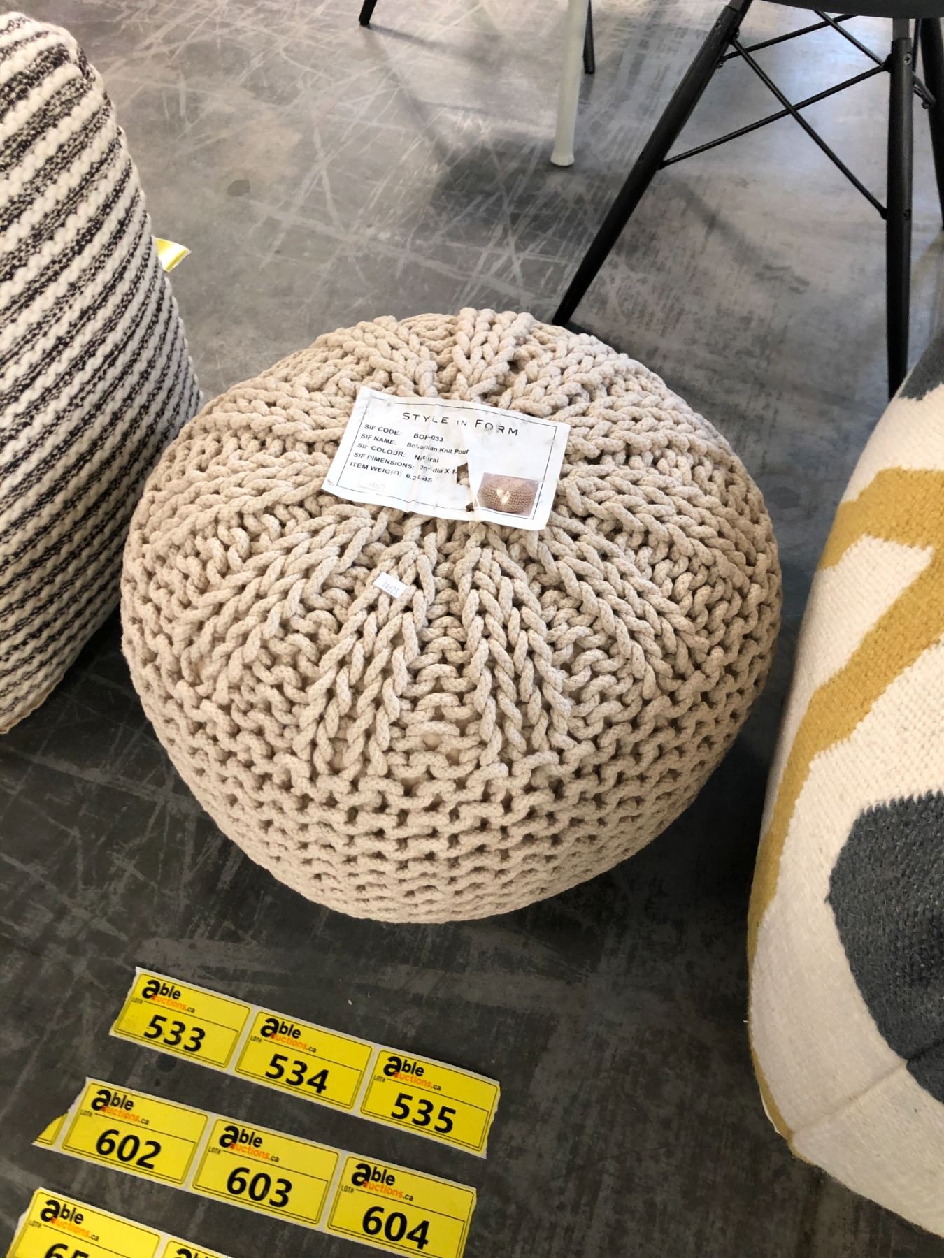 STYLE IN FORM CREAM BOHEMIAN KNIT POUF