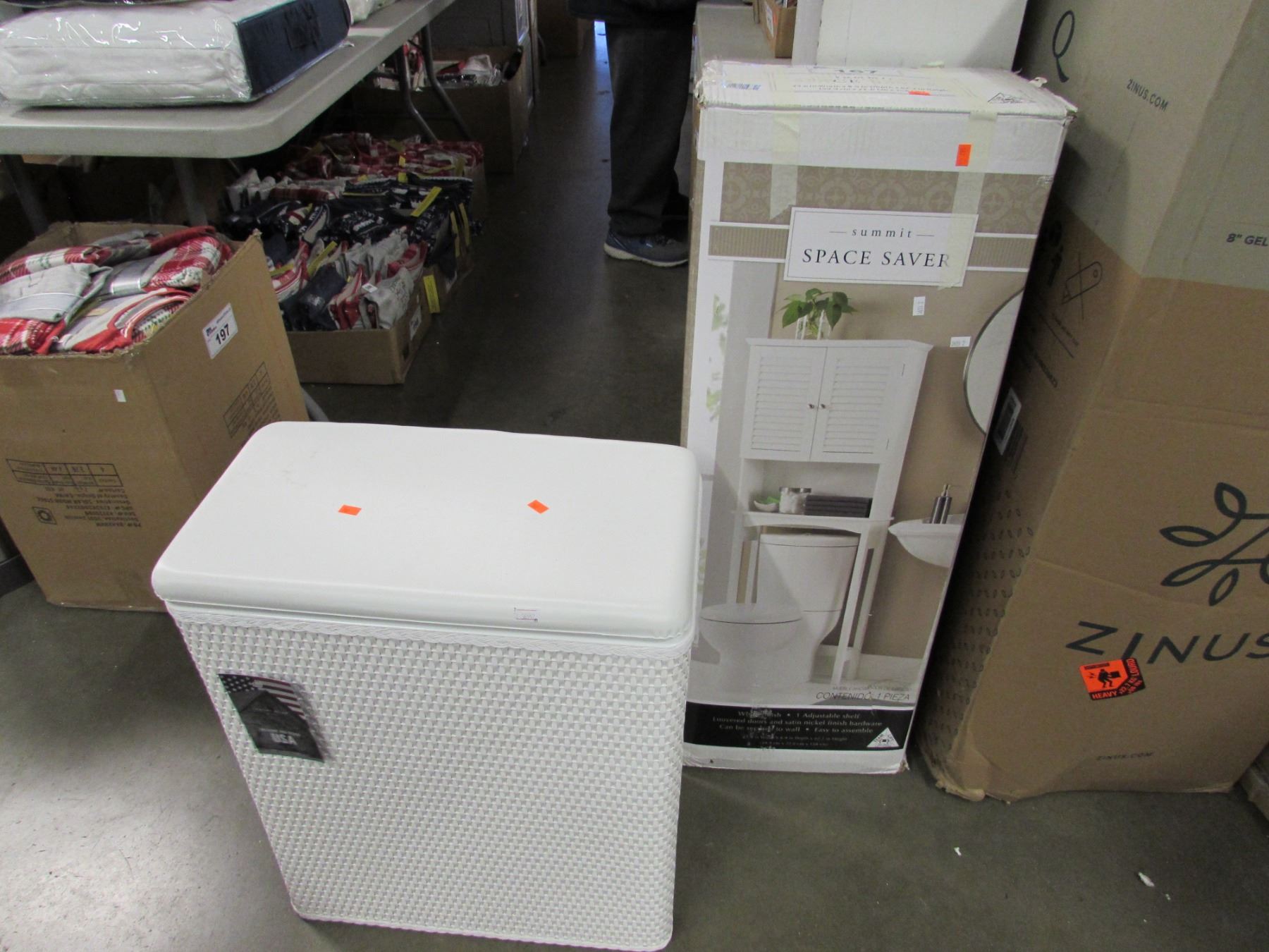 SUMMIT BATHROOM SPACE SAVER & WHITE LAUNDRY BASKET