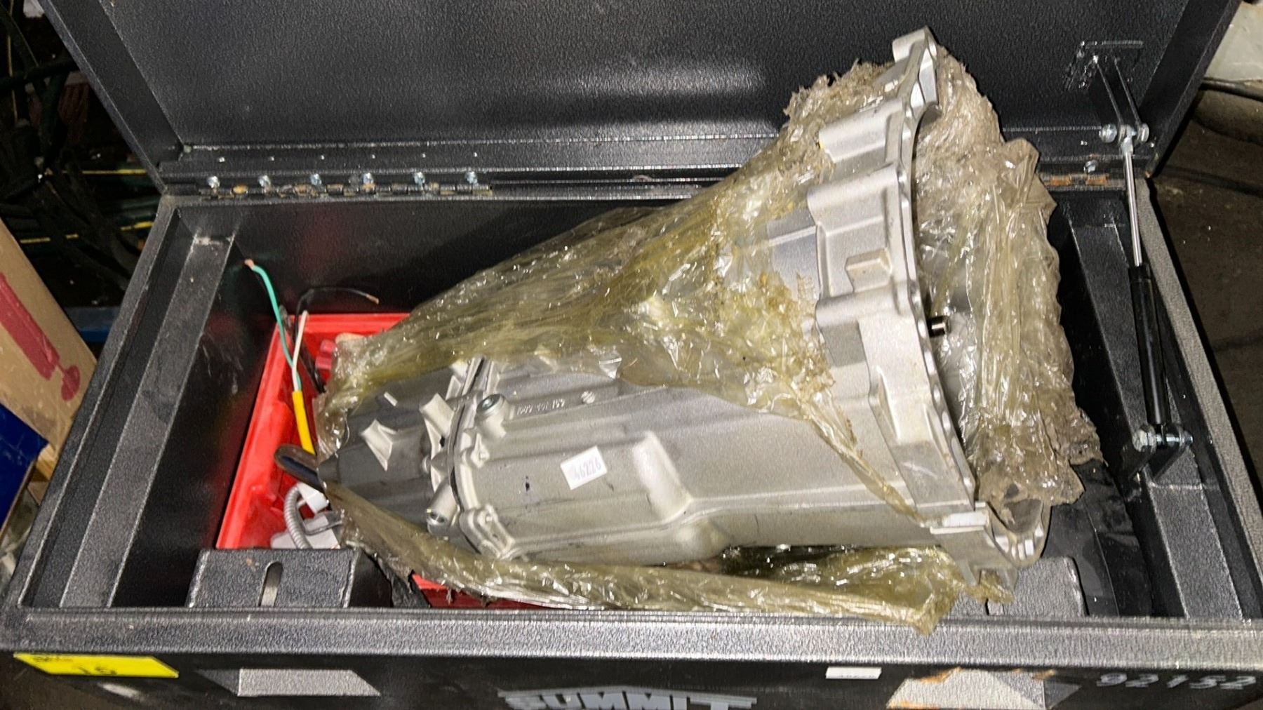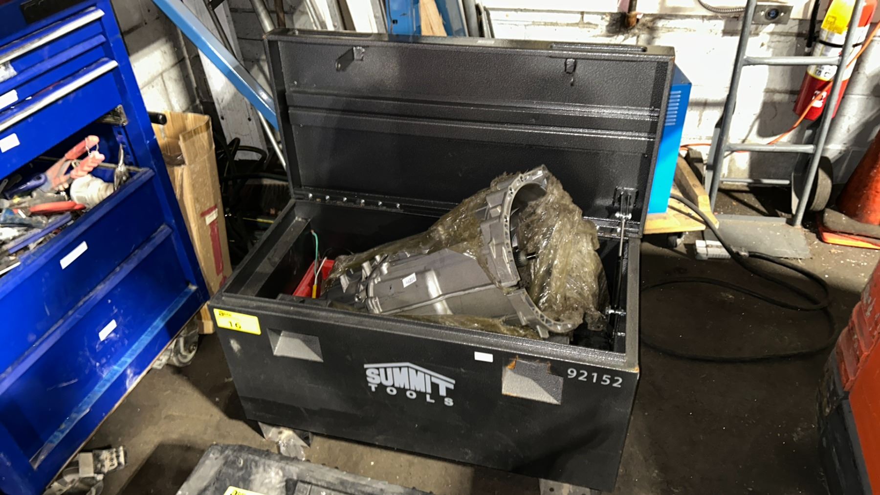 SUMMIT TOOLS INDUSTRIAL TOOL CHEST (36"W X 17"D X 22"H) WITH A TRANSMISSION AND VARIOUS HAND TOOLS