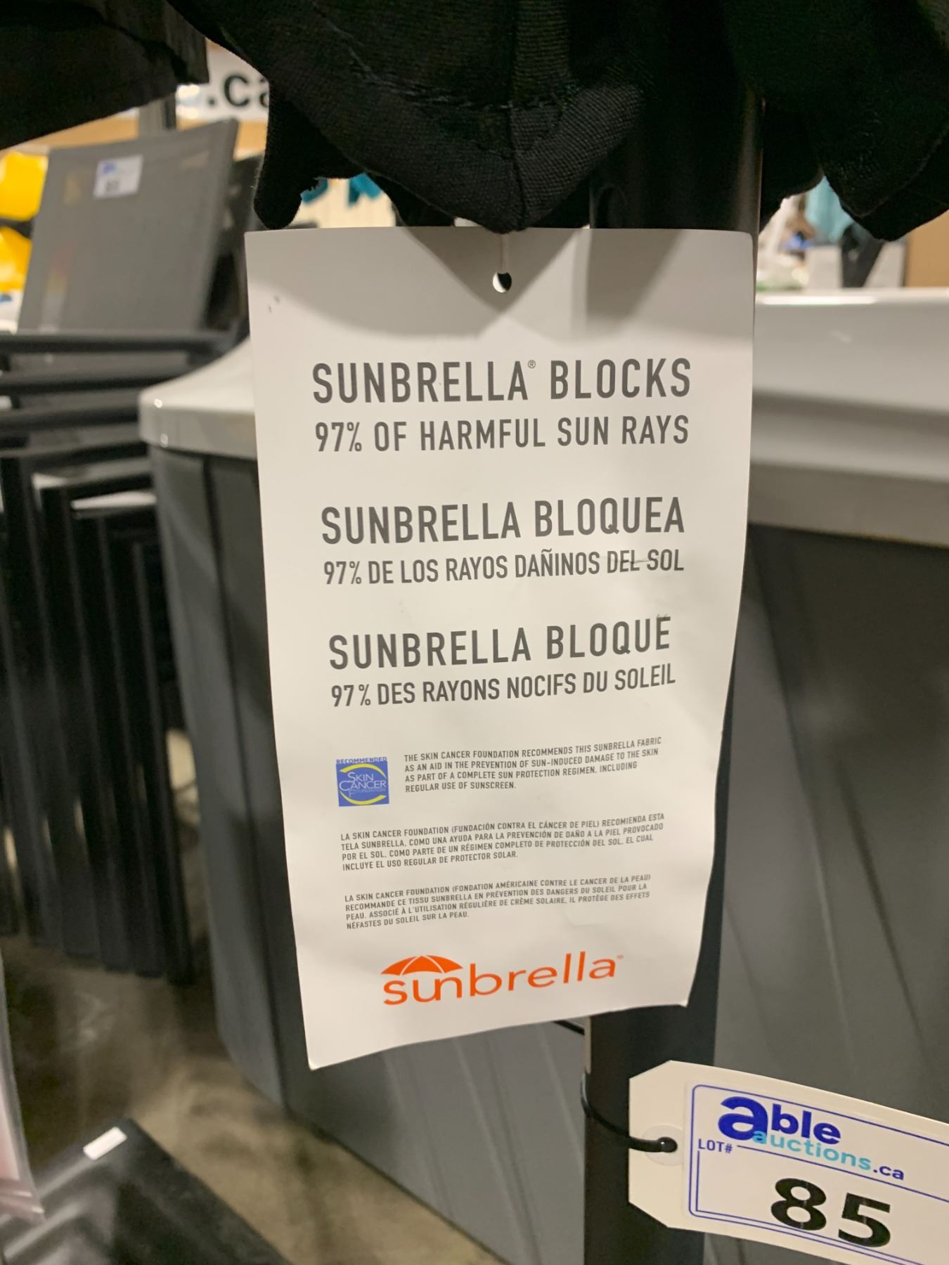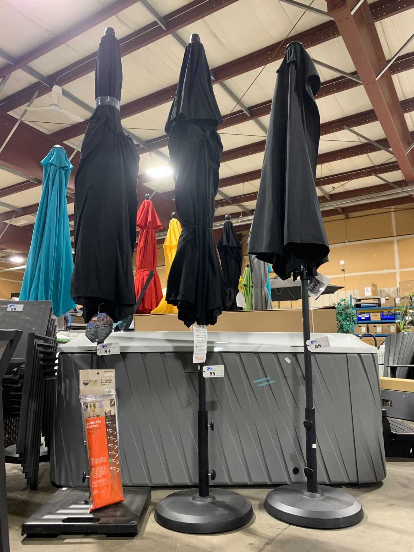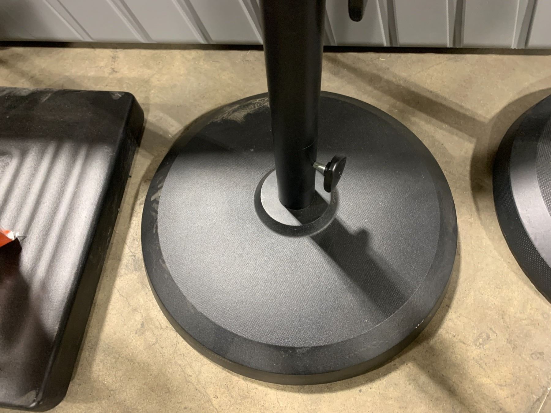 SUNBRELLA BLACK OUTDOOR PATIO UMBRELLA WITH BLACK ROUND UMBRELLA STAND