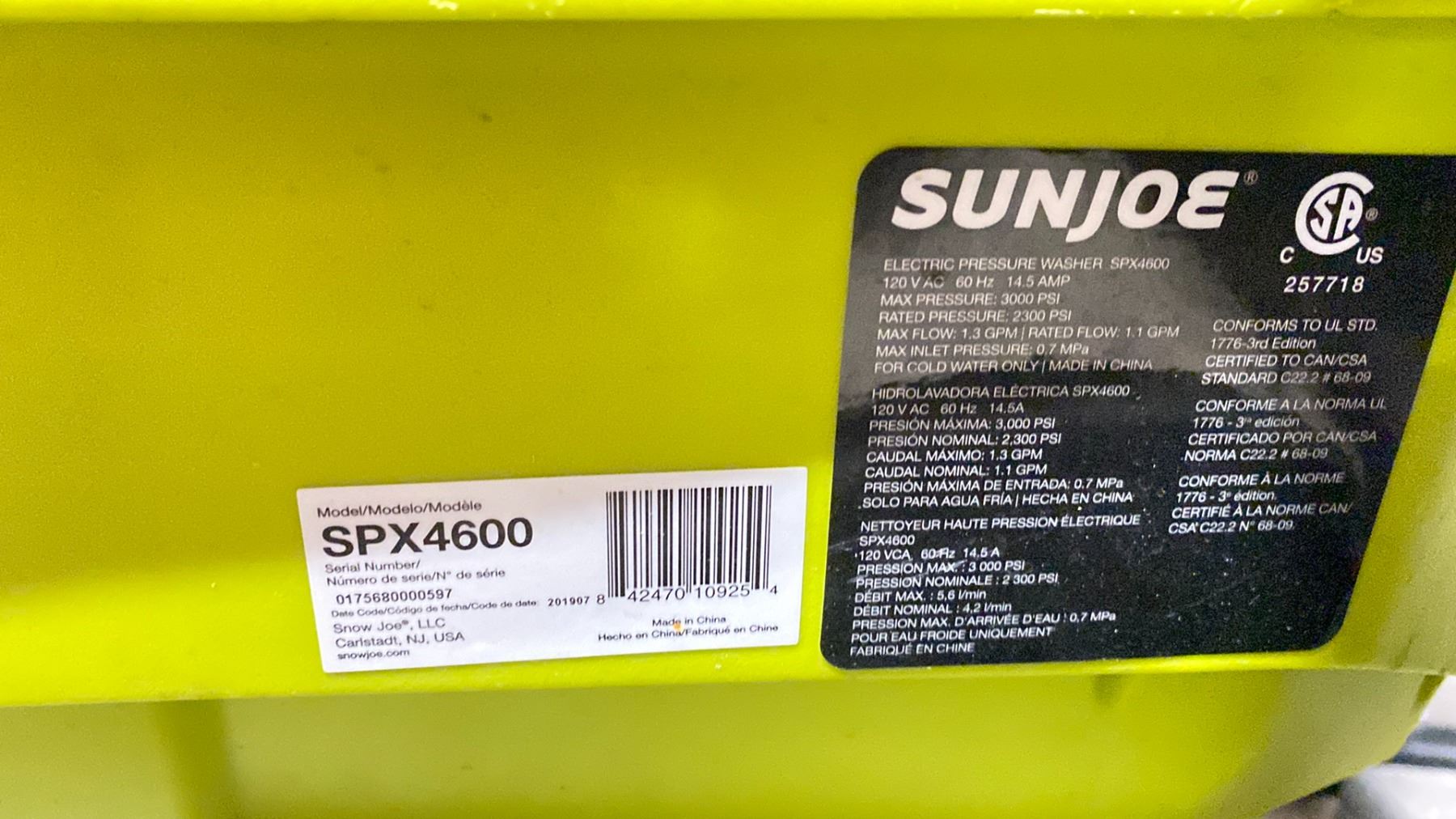 SUNJOE SPX4600 QUICKSTART 3000PSI MAX ELECTRIC PRESSURE WASHER