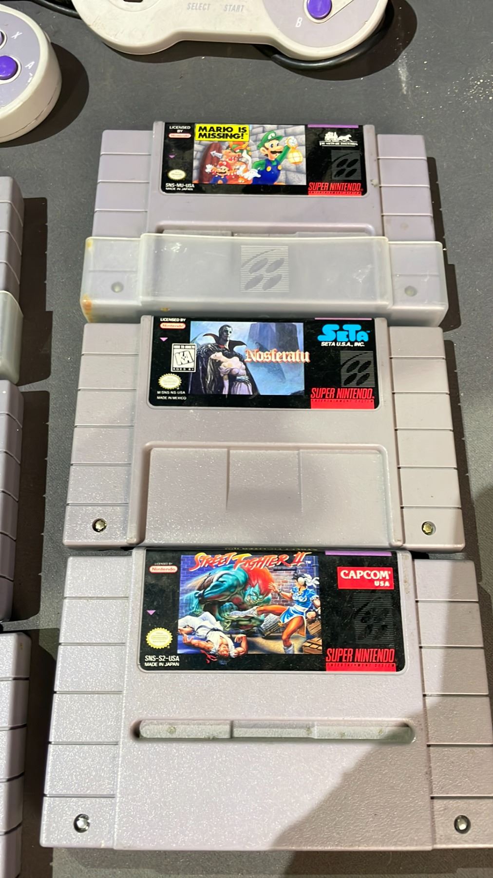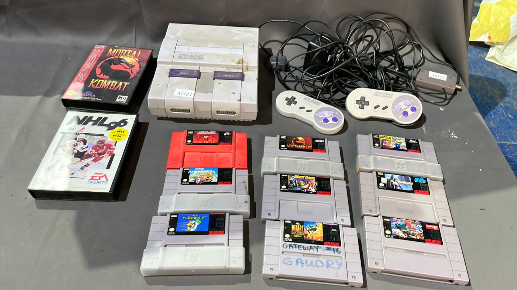 SUPER NINTENDO CONSOLE WITH ASSORTED GAMES AND 2 CONTROLLERS