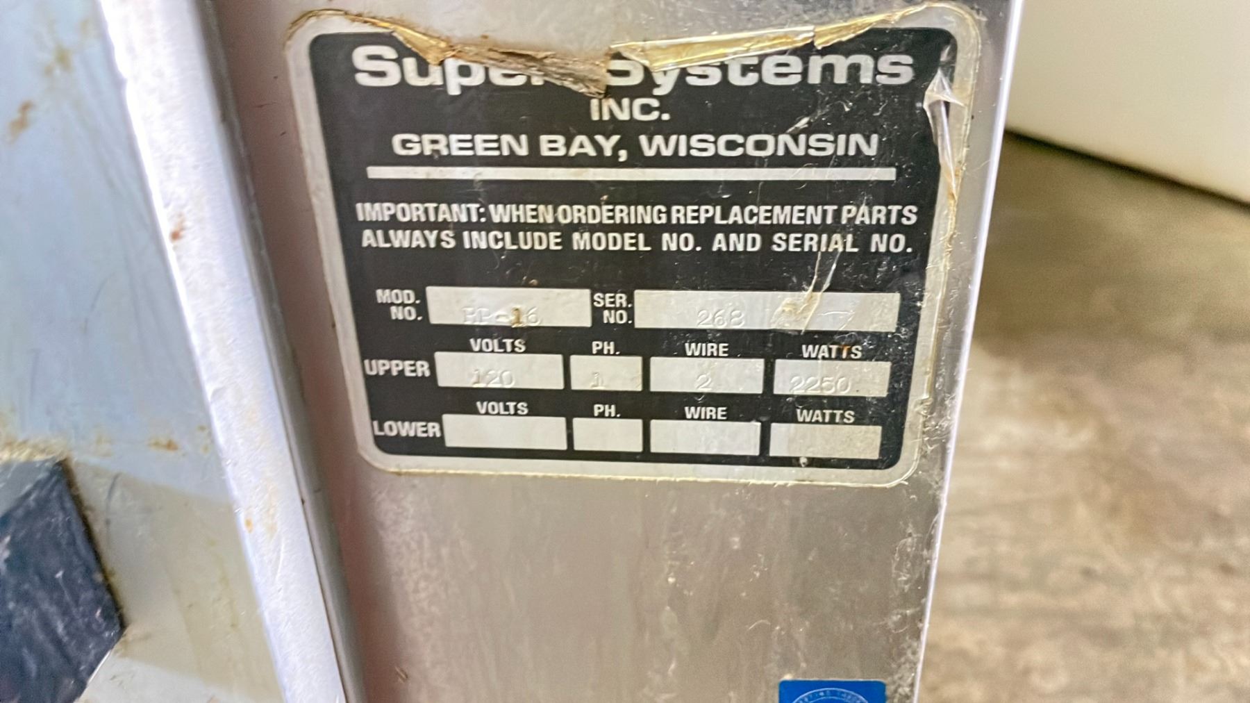 SUPER SYSTEMS STAINLESS STEEL RP-16 120V SINGLE PHASE 2 DOOR ELECTRIC COMMERCIAL PROOFER OVEN *MUST HAVE PROPER TOOLS / TECHNICIAN TO DISMANTLE*