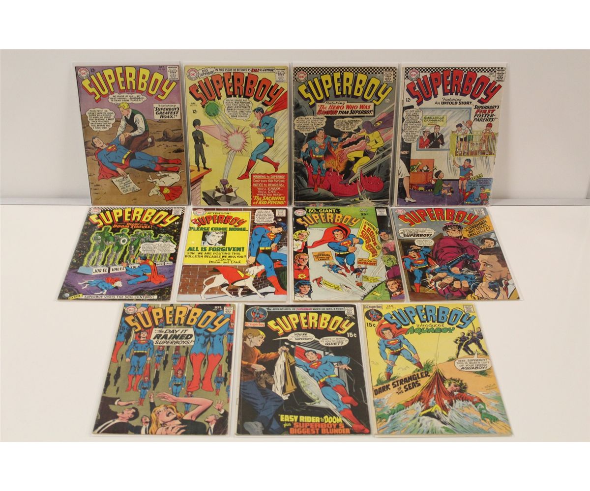 SUPERBOY #106-171 (1963-71) RUN OF 11 SILVER AGE ISSUES, NO DUPLICATES. INCLUDES KEY ISSUE #147 - - GIANT, 1ST ORIGIN OF LEGION. MIXED GRADES, GLOSSY, TIGHT & SUPPLE, SOLID LOT