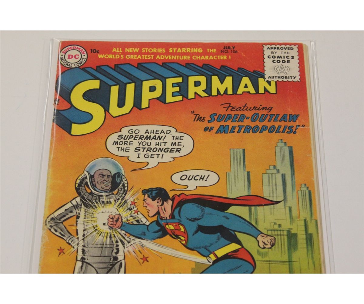 SUPERMAN #106 (1956) CLASSIC GOLDEN AGE SUPERMAN IN VERY SOLID MID GRADE.  COVER & CENTREFOLD TIGHT & SECURE.  NICE COPY !
