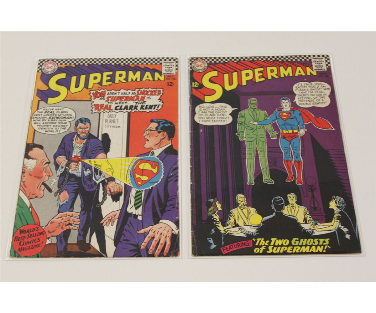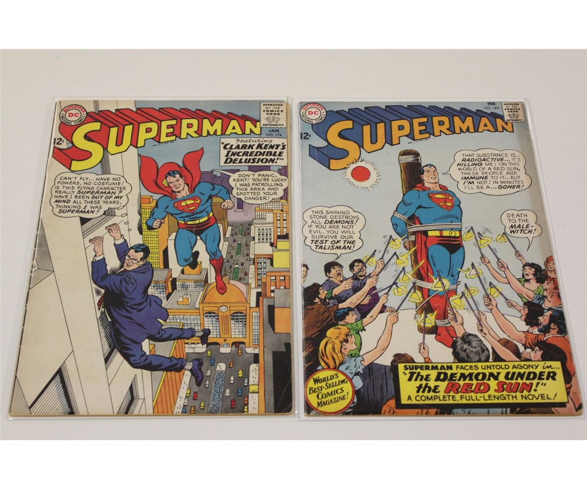 SUPERMAN #174, 184, 186, 198 (1965-67) MID GRADE AVERAGE. NICE & SOLID SILVER AGE BOOKS.