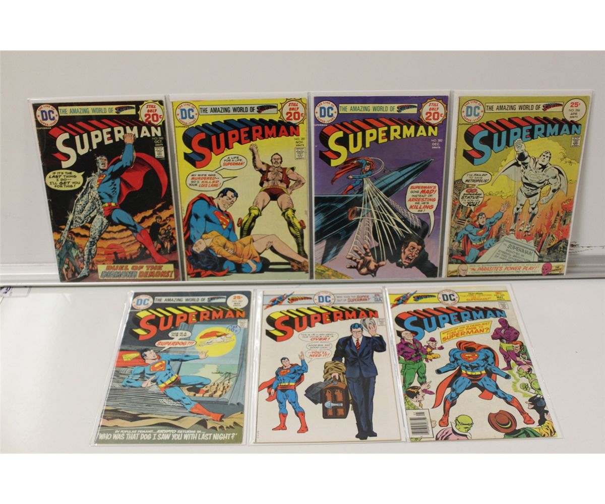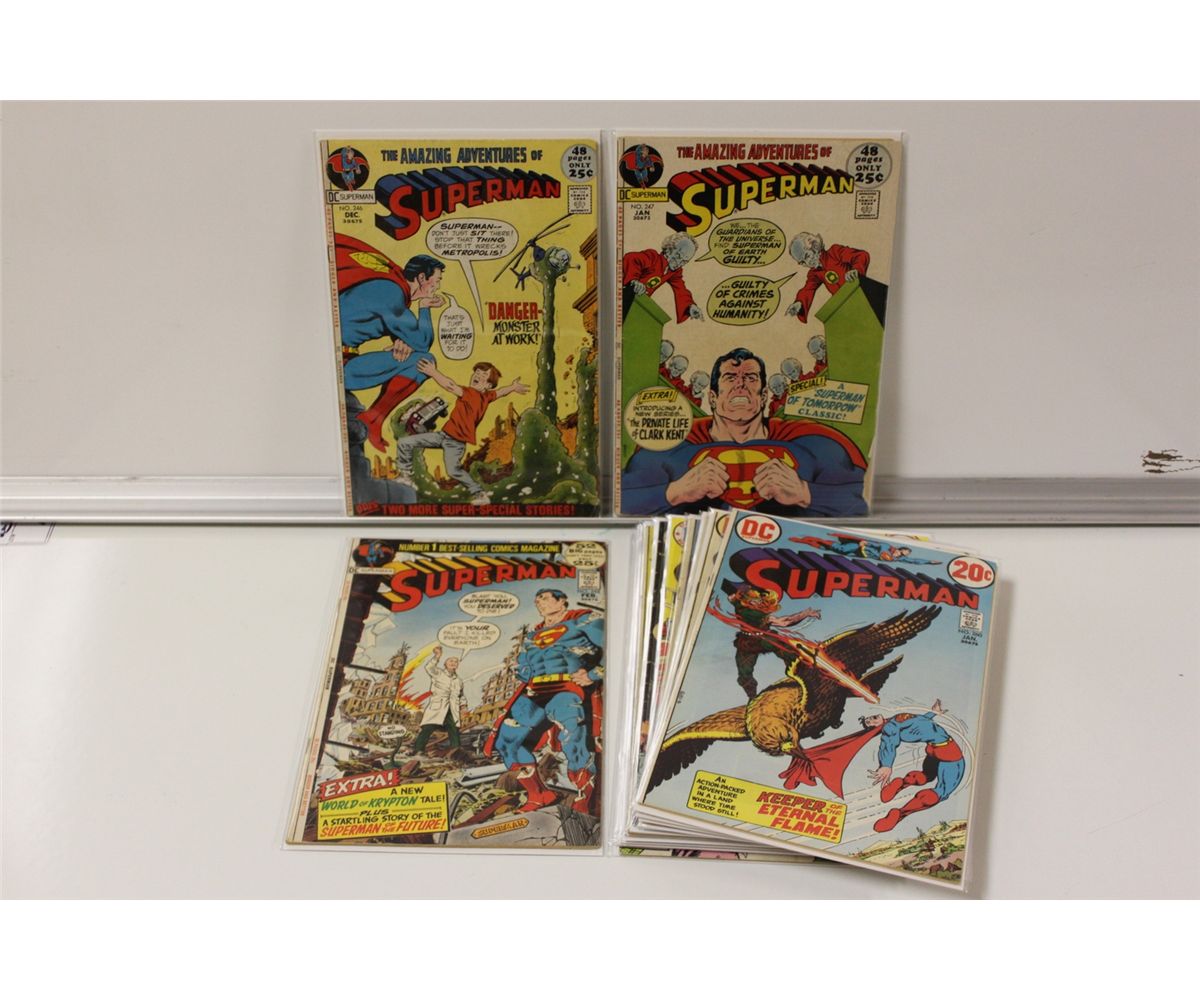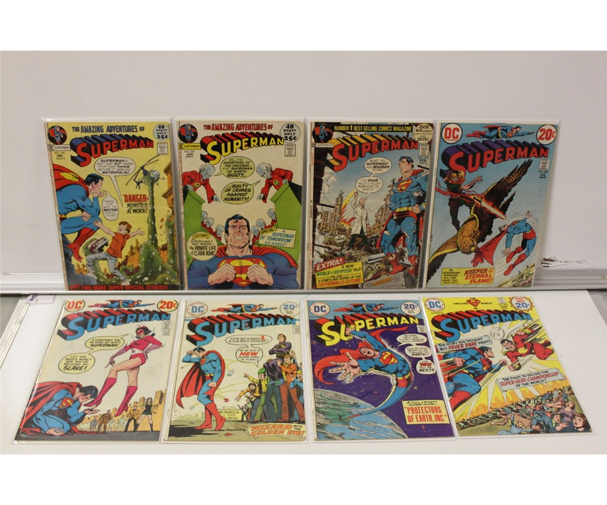 SUPERMAN #246-299 RUN (1971-76) 15 DIFFERENT ISSUES, INCLUDES 3 GIANTS. MIXED GRADES. NICE, SOLID BRONZE AGE LOT.