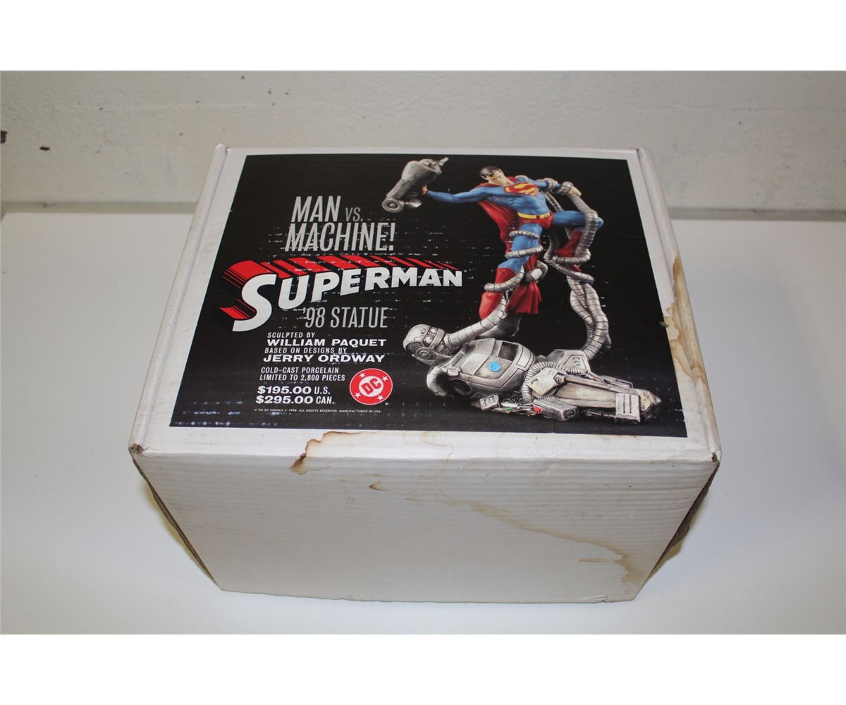 SUPERMAN MAN VS. MACHINE '98 STATUE, LIMITED EDITION, PAINTED STATUE NEW IN BOX. 2206/2800 *BOX HAS SOME WATER STAINING
