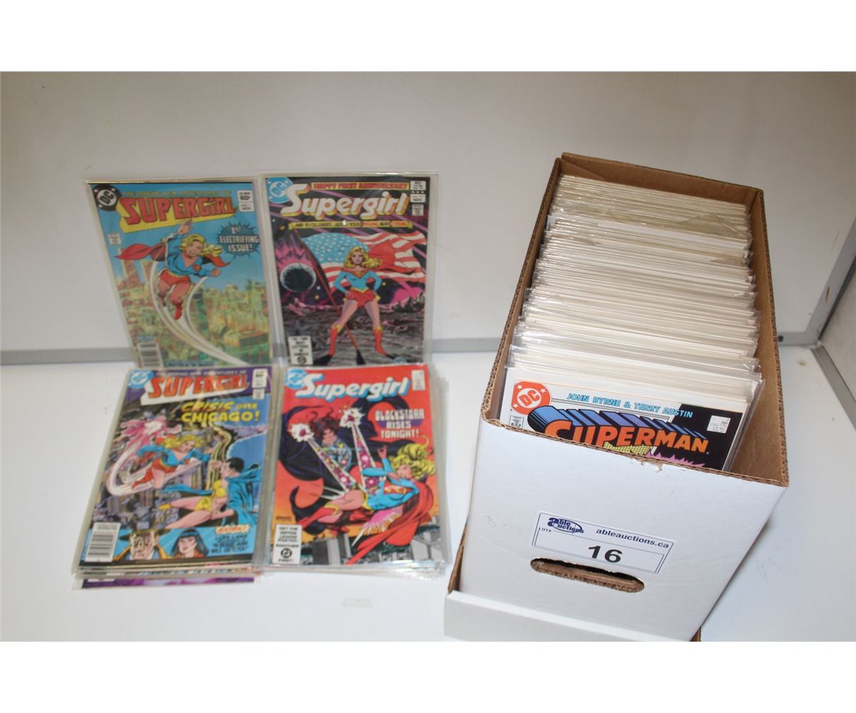SUPERMAN SHORT BOX (1970'S-90'S) INCLUDES SUPERMAN (1986) #2-100 CONSECUTIVE, SUPERGIRL (1982) #1-23 COMPLETE SET & MISC. SUPERMAN MAIN TITLE BRONZE BOOKS. MIXED GRADES