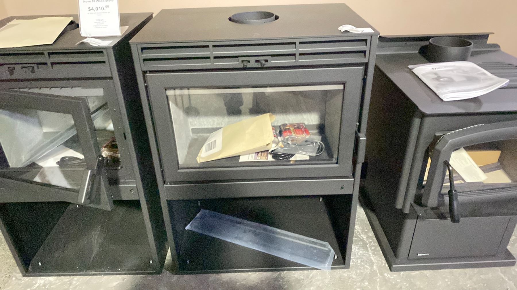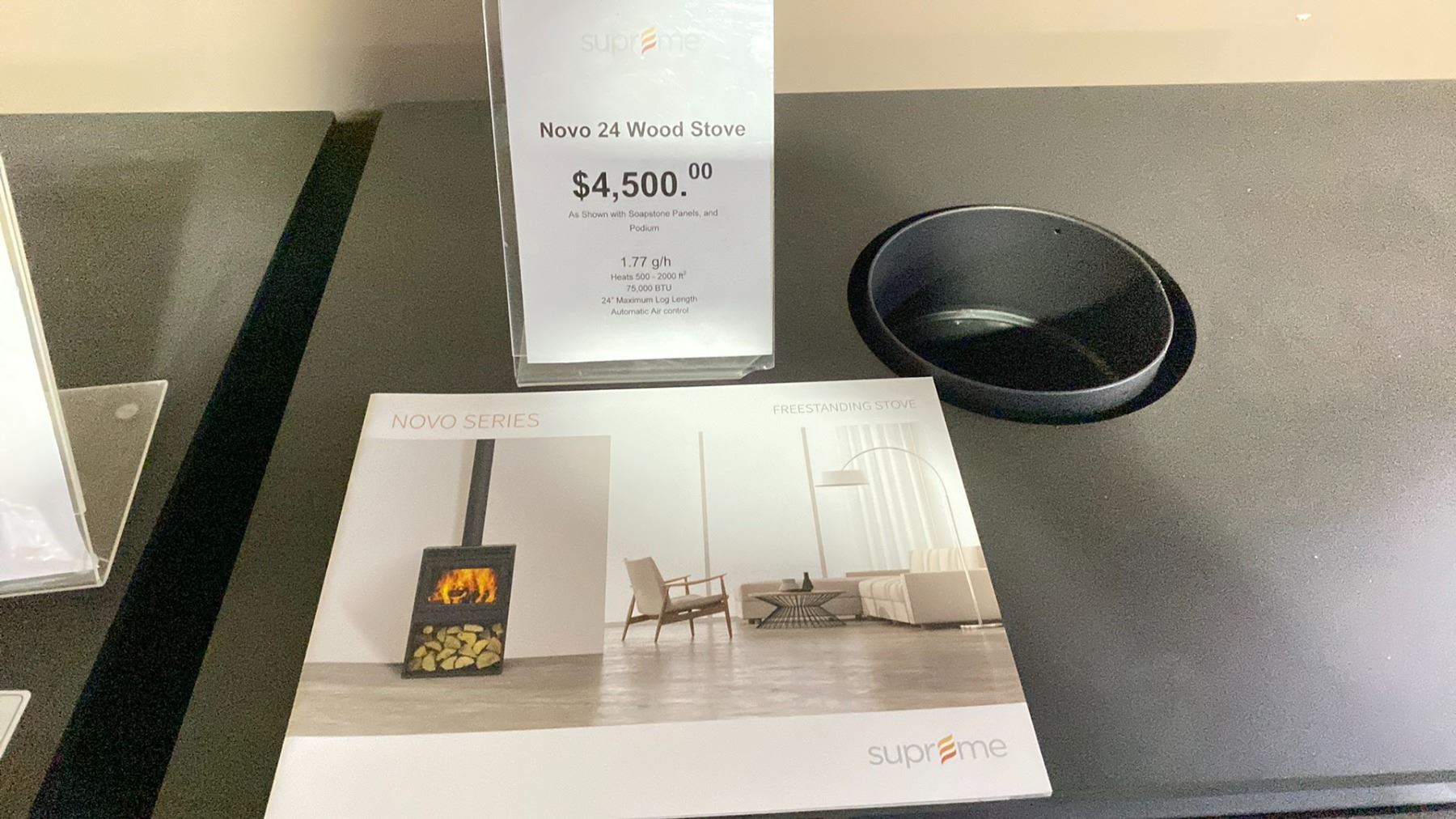 SUPREME NOVO 24 FREESTANDING WOOD STOVE. AS SHOWN WITH SOAPSTONE PANELS AND PODIUM. 1.77 G/H, HEATS 500-2000 SQ FT, 75,000 BTU, 24" MAX LOG LENGTH, AUTO AIR CONTROL. RETAILS $4500
