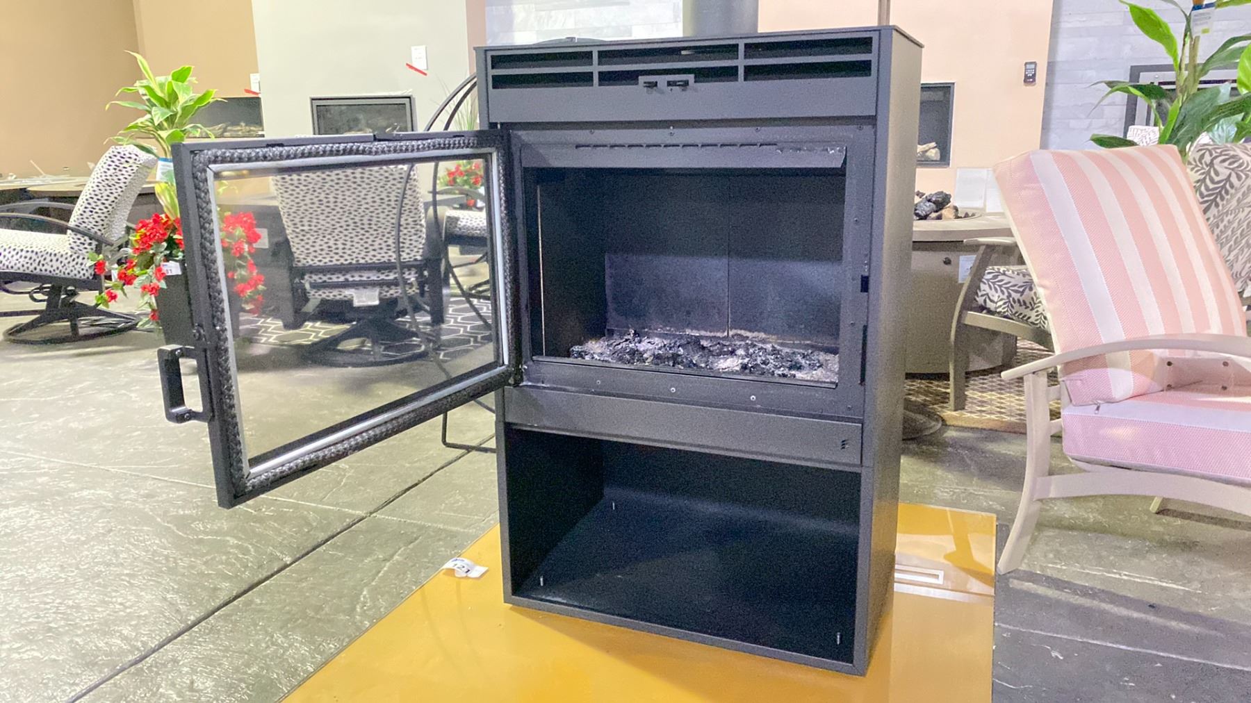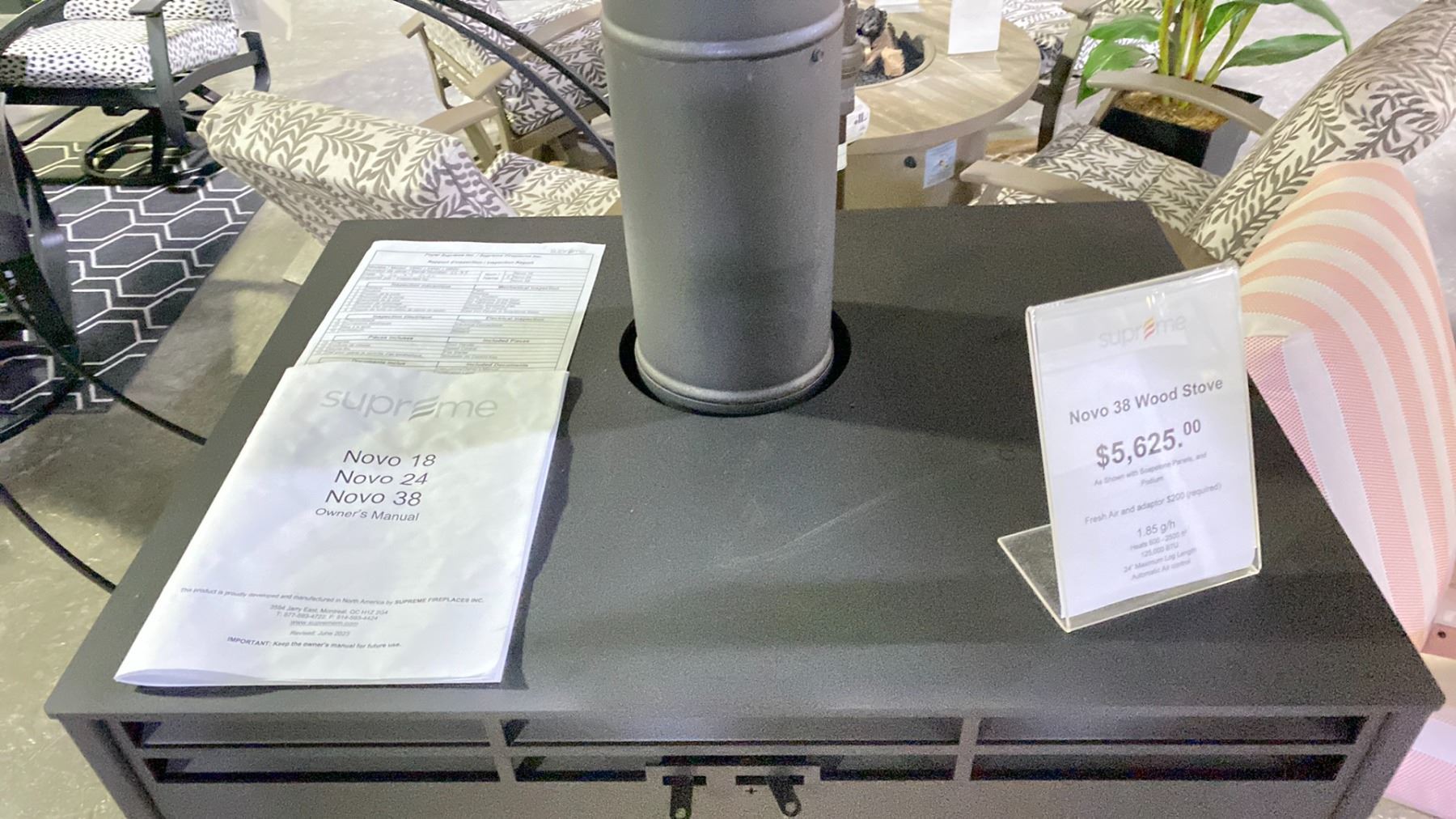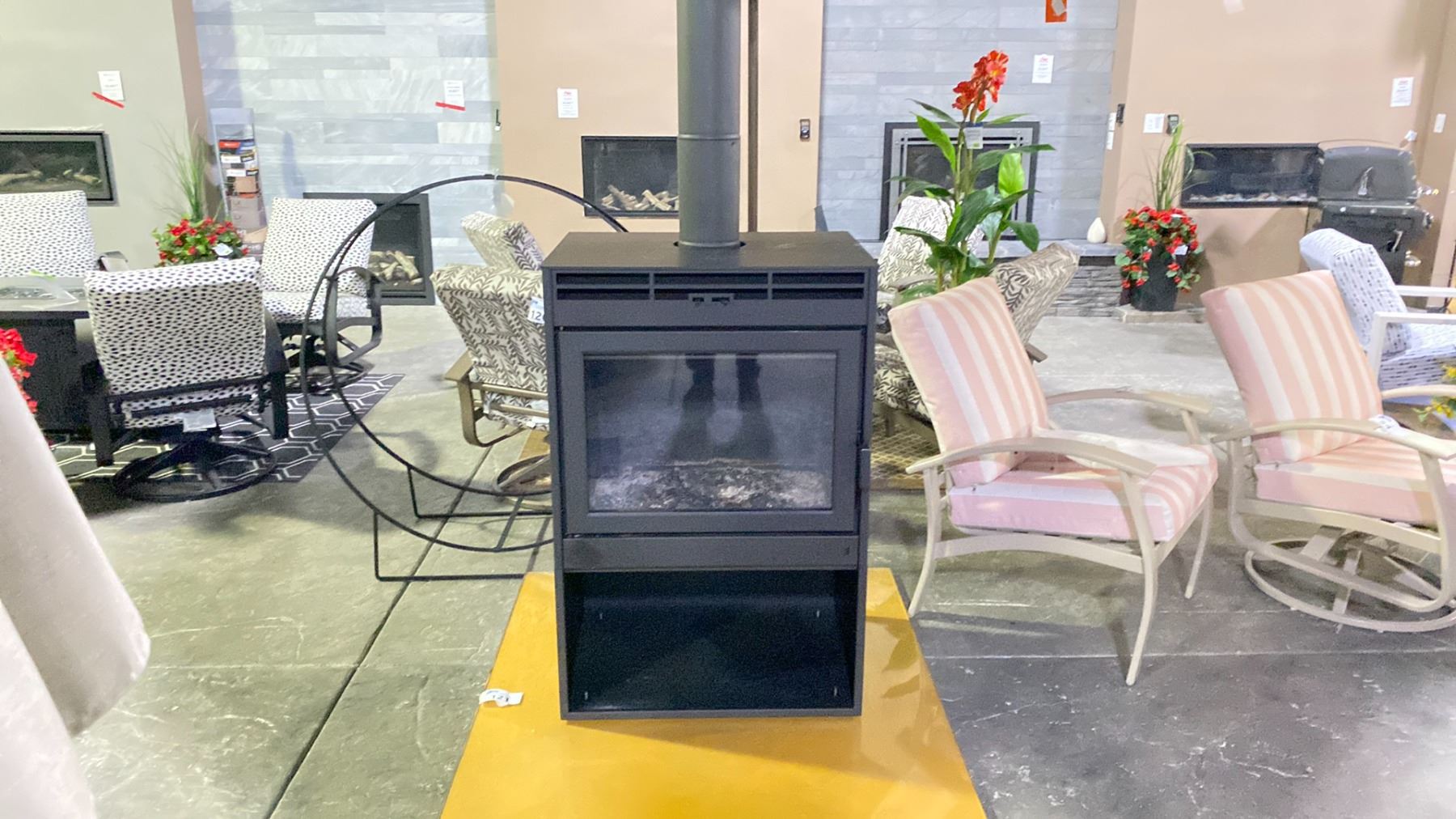 SUPREME NOVO 38 WOOD STOVE WITH SOAPSTONE PANELS AND PODIUM BASE. 1.85 G/H, HEATS 500-2500 SQ FT, 125.000 BTU, 24" MAX LOG LENGTH, AUTOMATIC AIR CONTROL