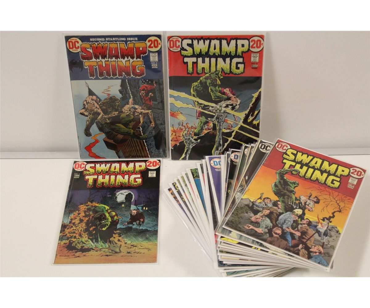 SWAMP THING #2-24 + 4 BRONZE GIANTS (1973-76) NEAR COMPLETE SET MISING #1 & 22 ONLY. INCLUDES 4 DIFFERENT GIANTS. MIXED GRADES WITH MANY SHARP COPIES. GLOSSY, TIGHT & SUPPLE, NICE LOT! 2013 OVERSTREET TOP END GUIDE VALUE OF APPROX $1,400