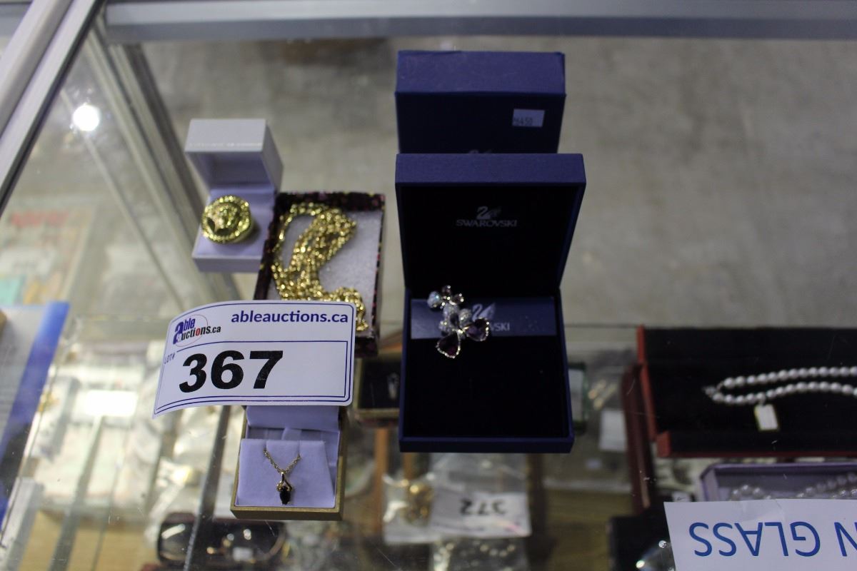 SWAROVSKI JEWELLERY SET NECKLACE WITH CHARM GOLD PLATED CHAIN AND RING