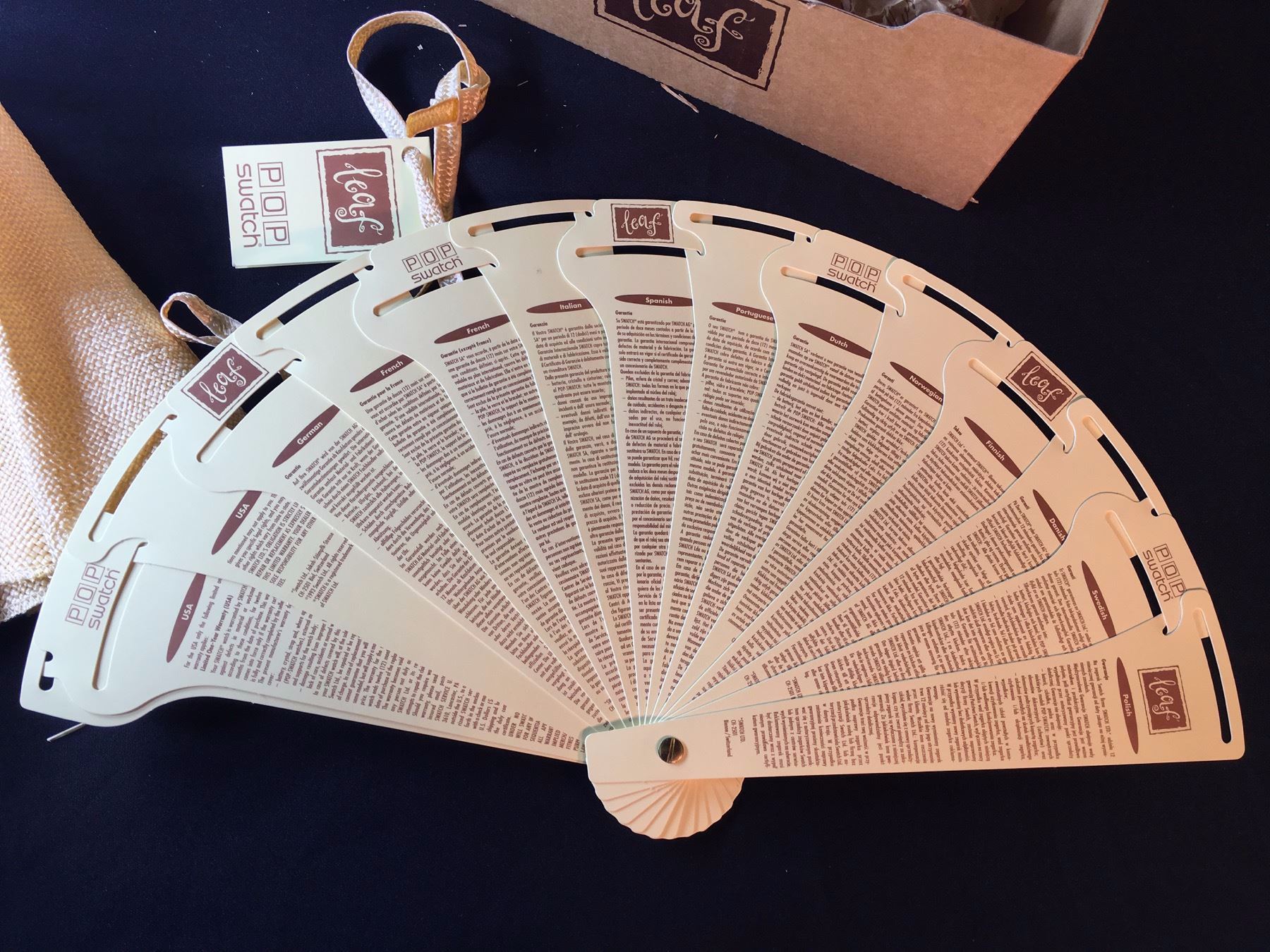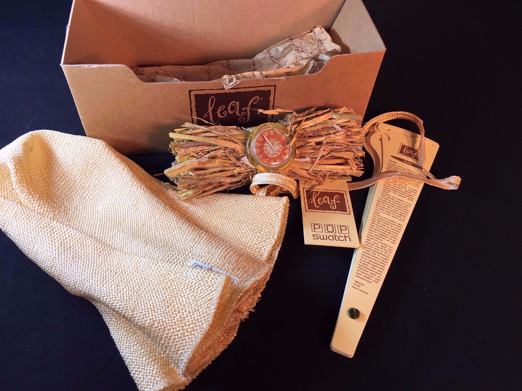 SWATCH LEAF WATCH, WITH ORIGINAL FAN PAMPHLET, BAG/HAT, RIBBON, AND PACKAGING, 1994, MODEL PWZ-108