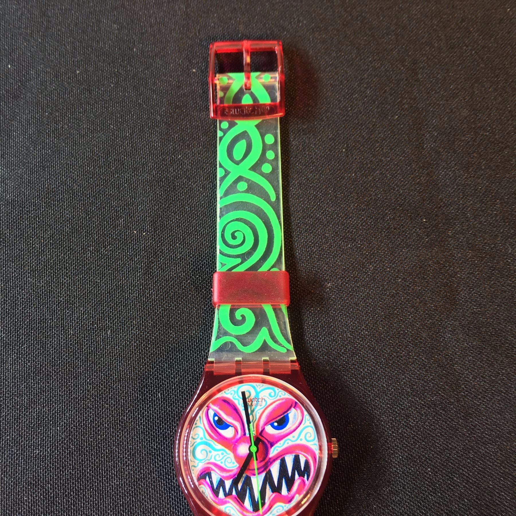 SWATCH "MONSTER TIME" WATCH, BY ARTIST KENNY SCHARF, 1994, MODEL GR-121, COMES WITH FALL/WINTER