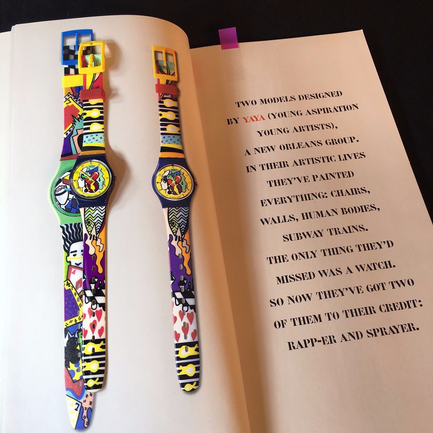 SWATCH "SPRAYER" WATCH BY DESIGNER YAMA (YOUNG INSPIRATION YOUNG ARTISTS), 1995, MODEL LN-121, COMES WITH SPRING/SUMMER 1995 CATALOGUE