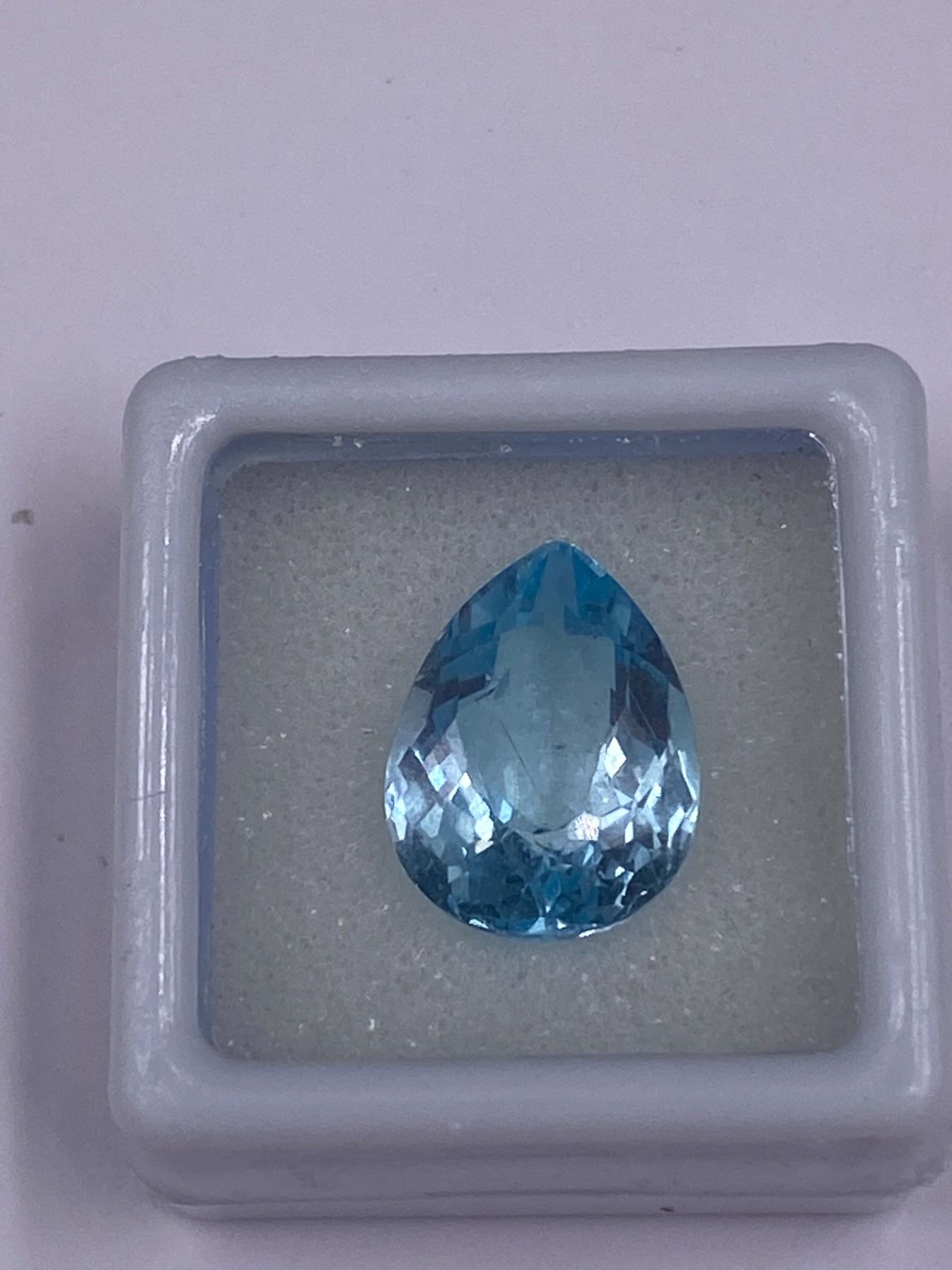 SWISS BLUE TOPAZ 9.68CT, 15.0 X 11.5 X 7.5MM, PEAR CUT, CLARITY IF-LOUPE CLEAN, BRAZIL