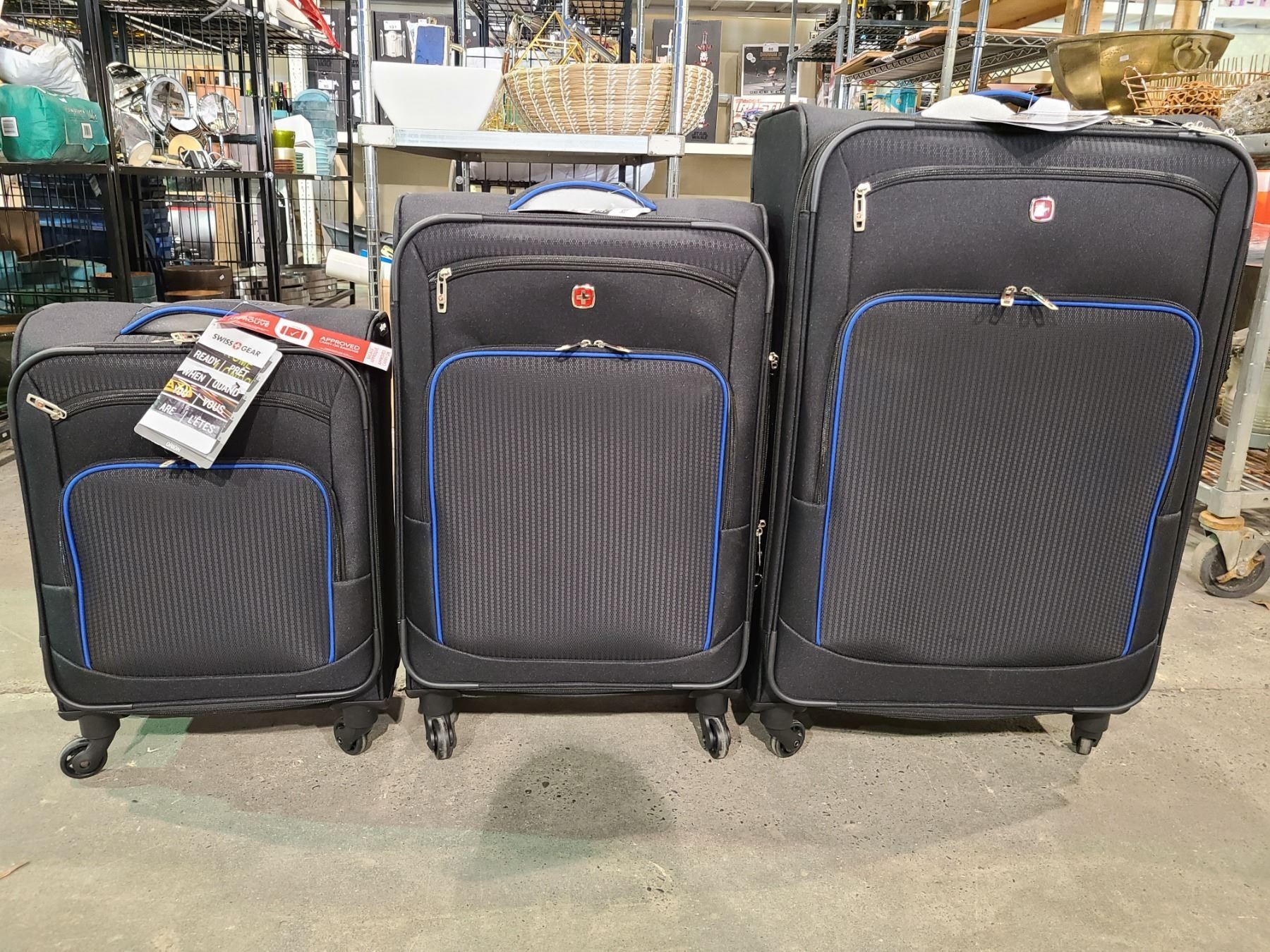SWISS GEAR 3 PIECE LUGGAGE SET BLACK WITH BLUE TRIM