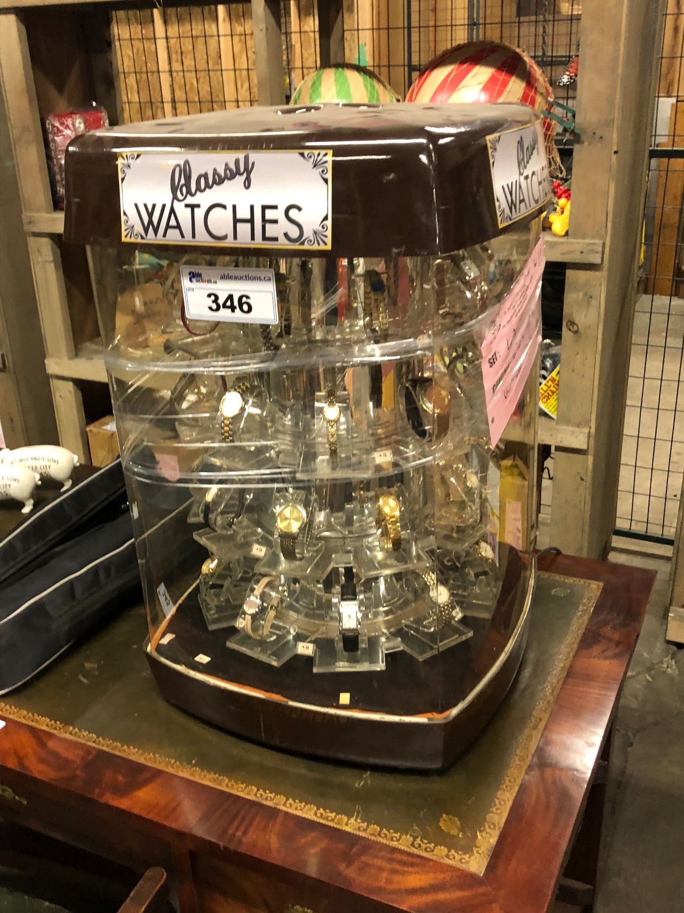SWIVEL WATCH DISPLAY CASE WITH ASSORTED WATCHES