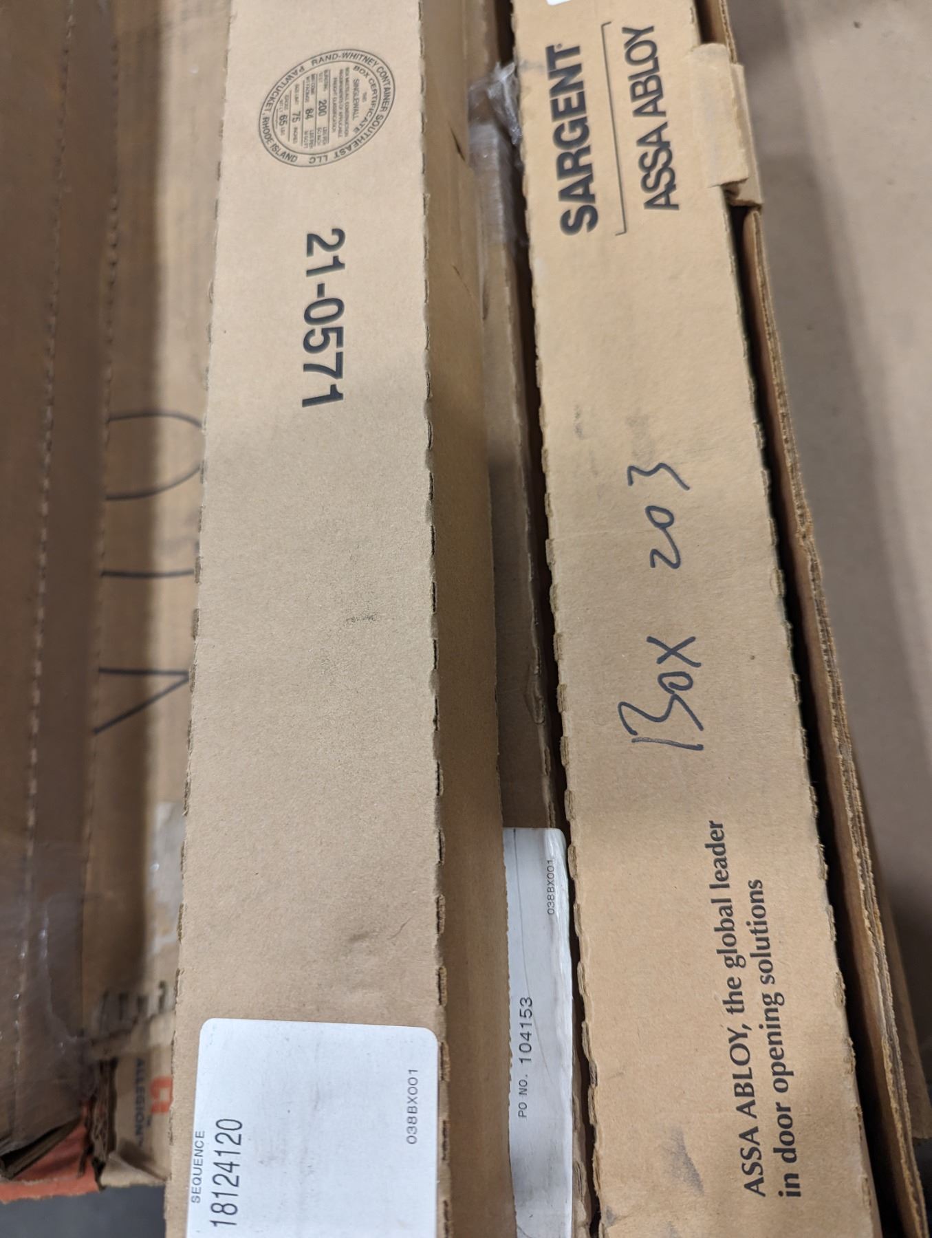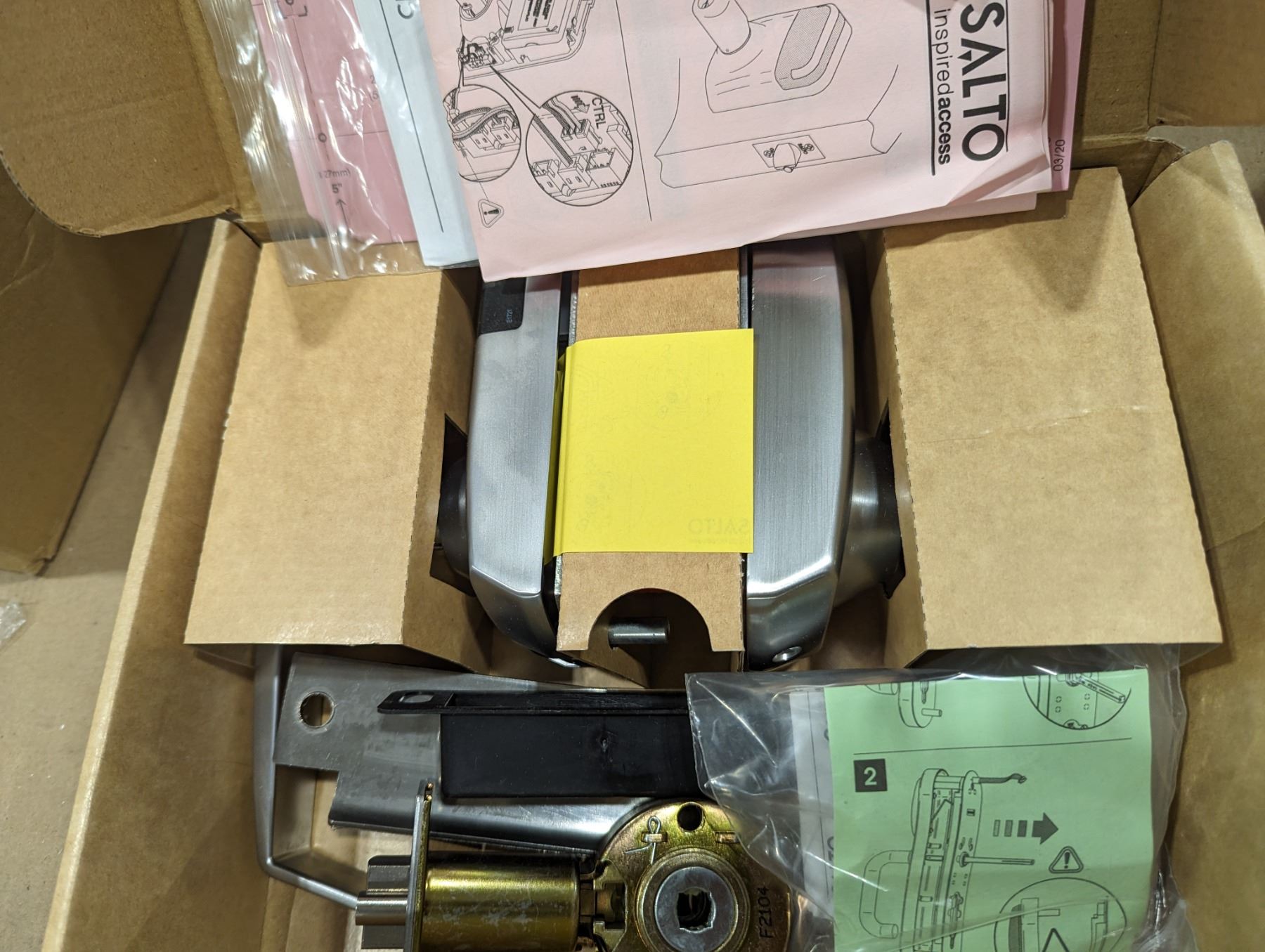 TABLE GROUP LOT ASST DOOR HOLDERS, OVERHEAD DOOR STOPS, DOOR PULLS, DOOR STOPS, SALTO ELECTRONIC LOCK, ETC