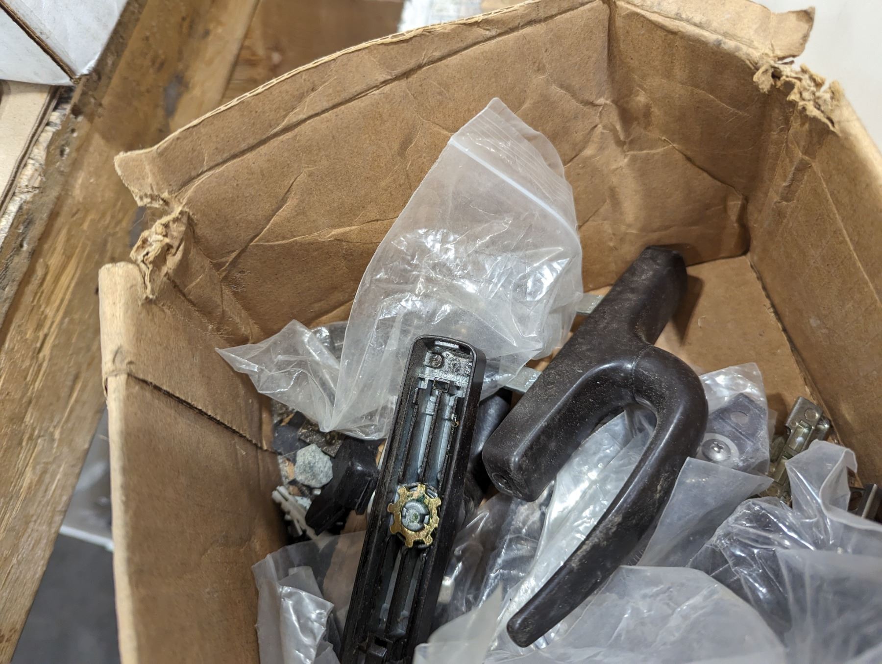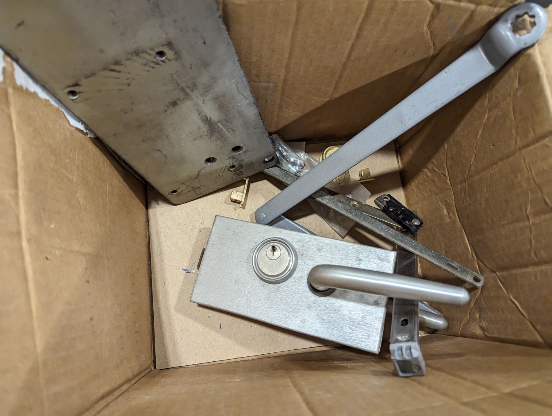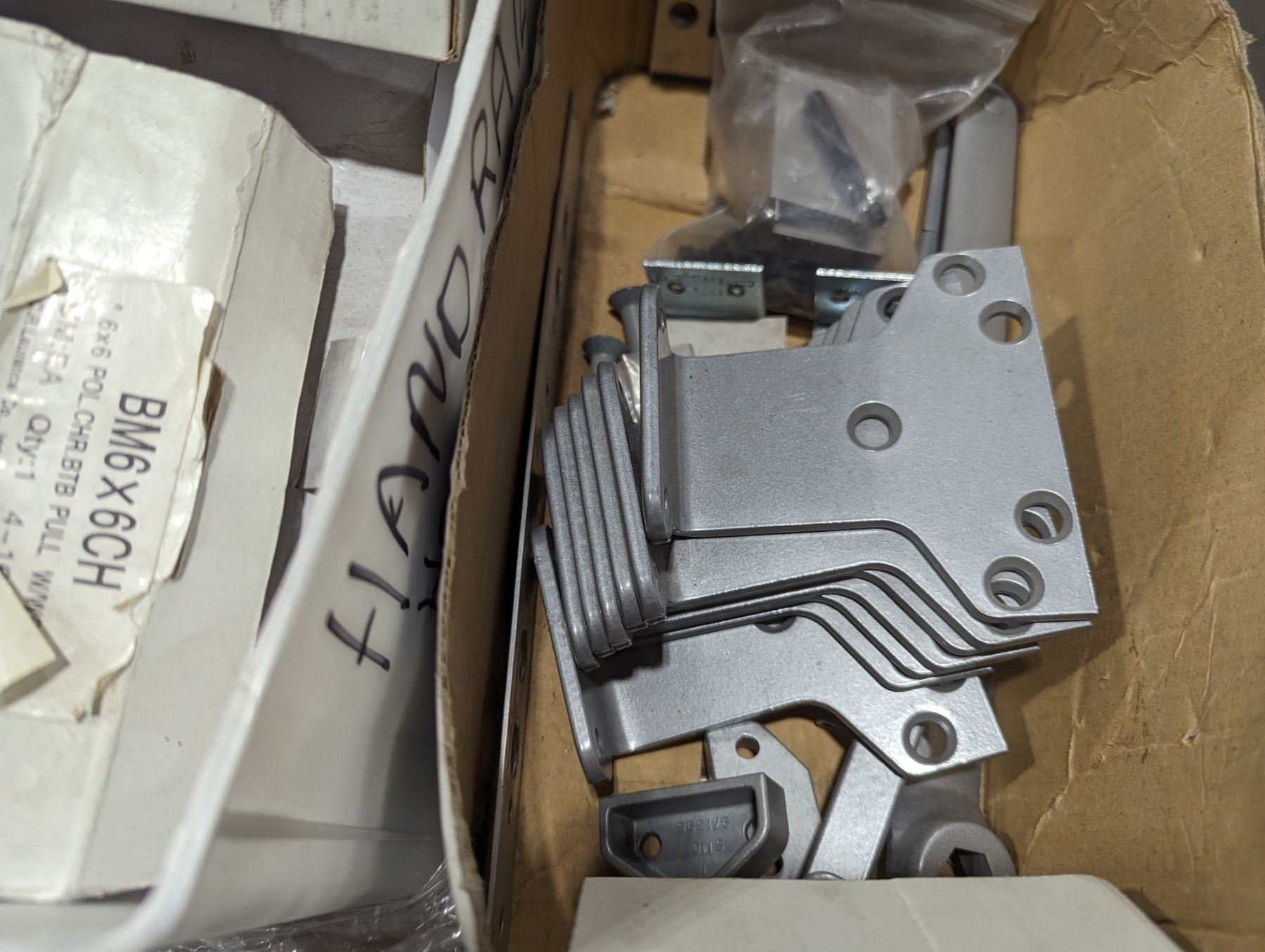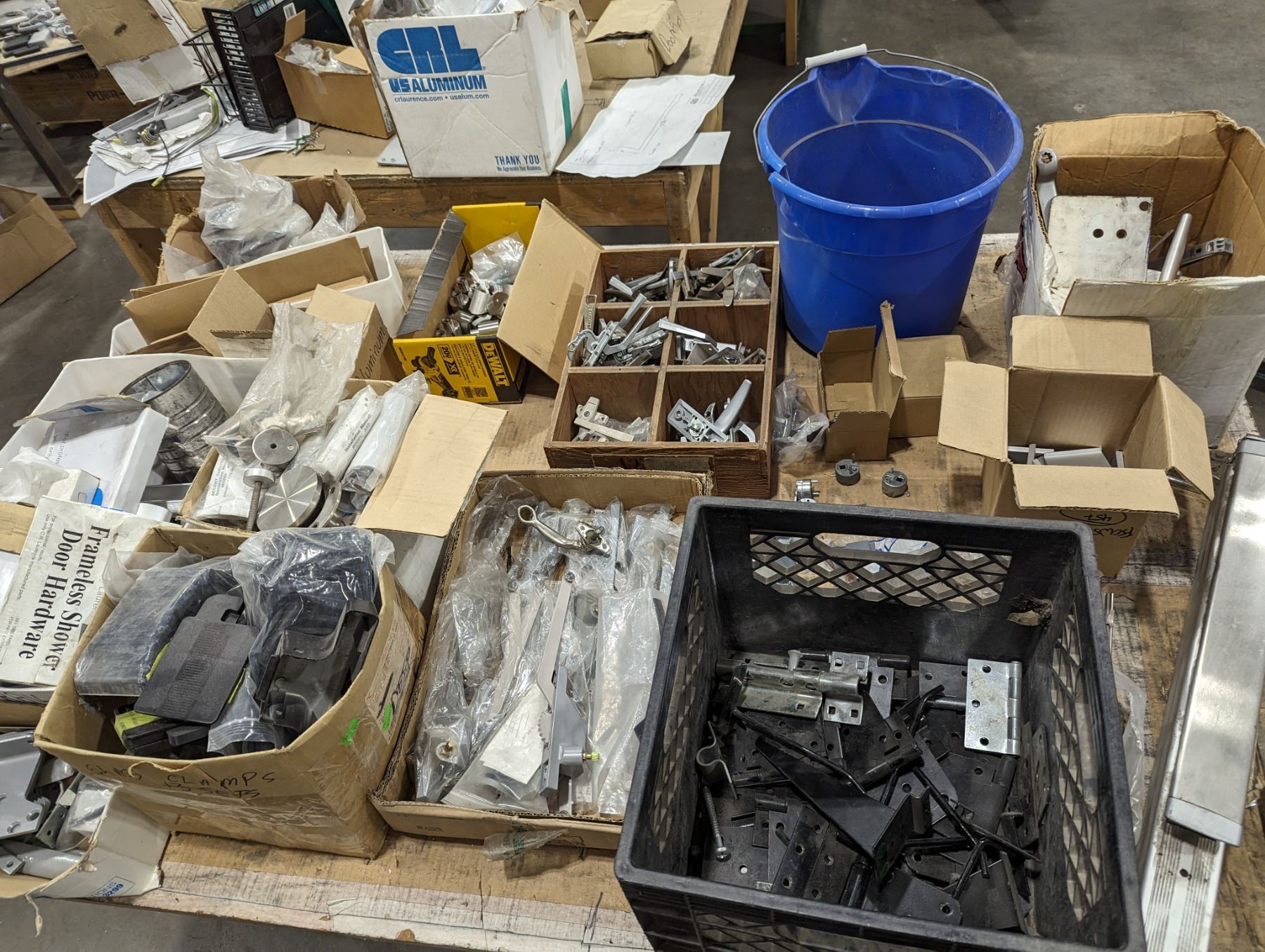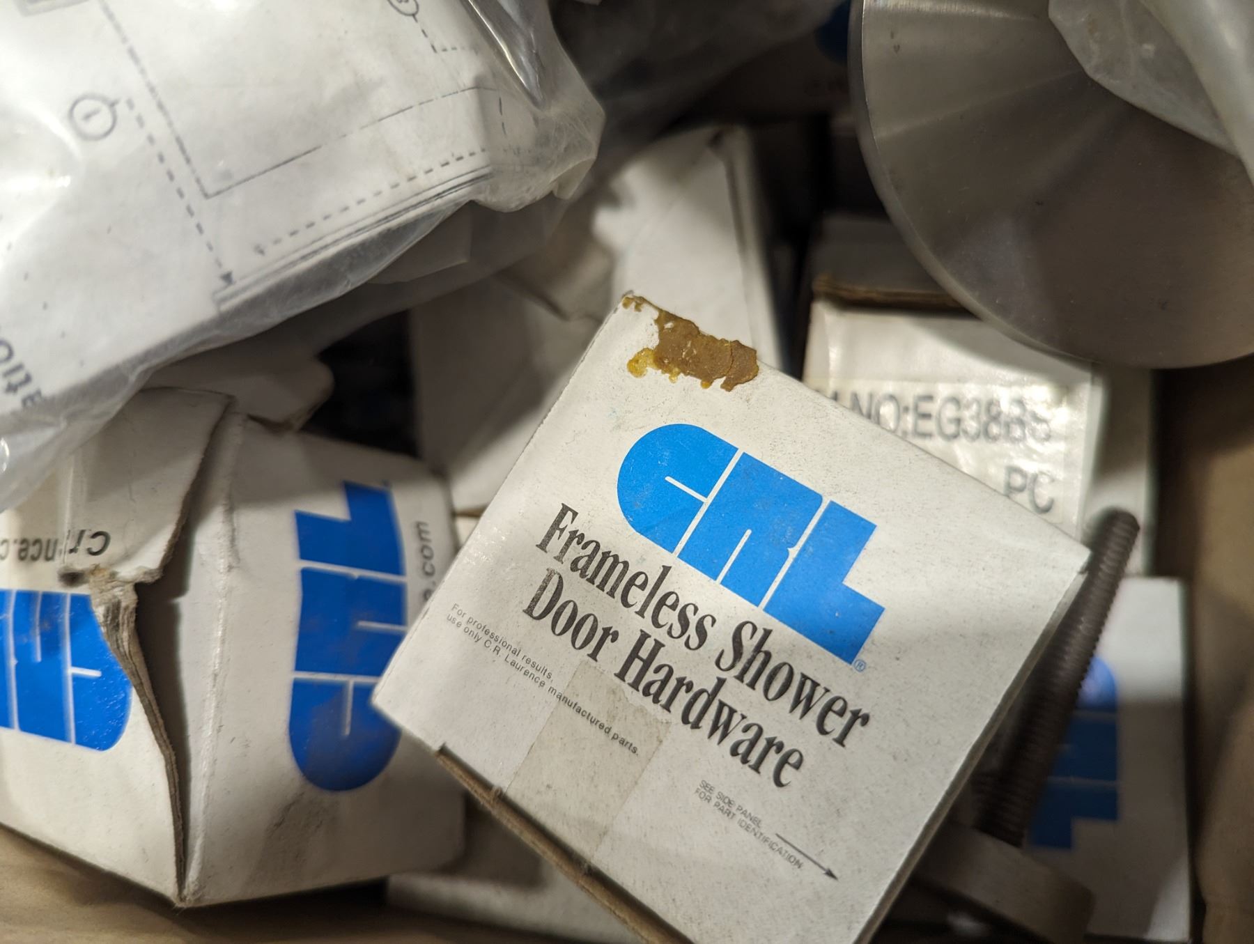 TABLE LOT OF ASST SPECIALTY DOOR HARDWARE, CRL SHOWER DOOR HARDWARE, ROTO OPERATORS,
