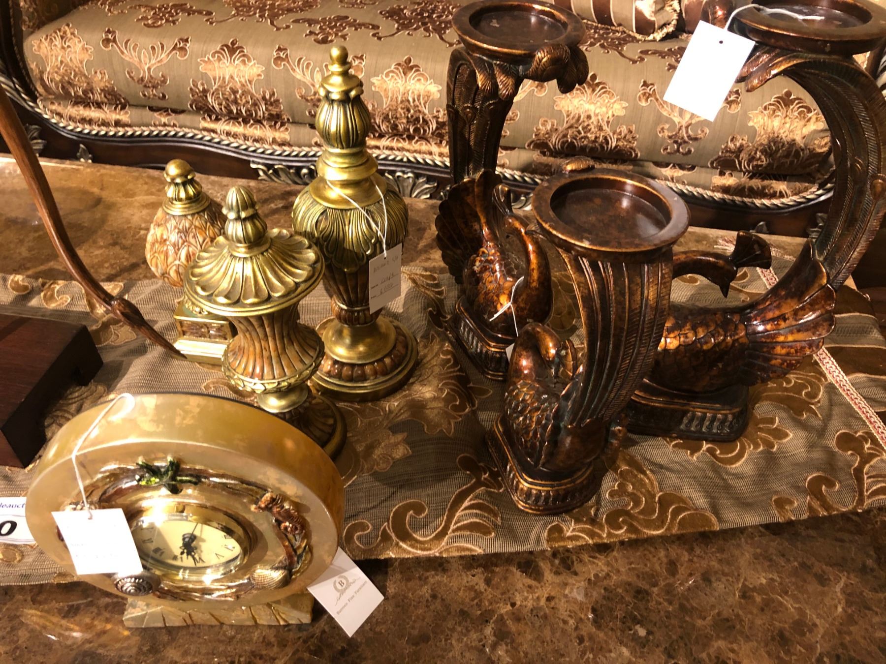 TABLE RUNNER WITH LOT OF DECOR ITEMS