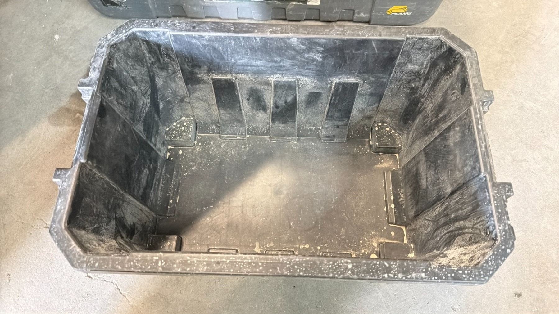 TACTIX PLASTIC PORTABLE JOBSITE TOOLBOX WITH ASSORTED CONTENTS
