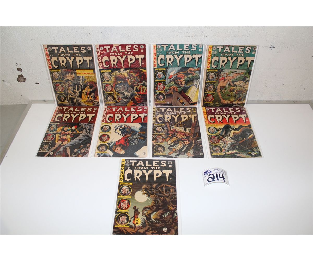 TALES FROM THE CRYPT #34-35, 38, 40-41 & 43-46 (1954-55) LARGE RUN OF INFAMOUS EC 1950'S VIOLENT & EXPLICIT TITLE. #40- USED IN SENATE HEARINGS, #46 - LAST ISSUE, LOW DISTRIBUTION. MIXED GRADE RUN OF 9 LOW TO MID GRADE ISSUES, WITH MANY SOLID, NICE & SUPPLE COPIES IN THE 1950'S EC COMICS PUBLISHED WHAT ARE CONSIDERED BY MANY THE HIGHEST QUALITY COMIC BOOK STORIES EVER MADE. FEATURING A SLEW OF INDUSTRY TALENT: CRAIG, DAVIS, FELDSTEIN, INGLES, KAMEN THIS IS A RARE & UNIQUE OPPORTUNITY TO ACQUIRE ONE THIRD OF THIS TRULY CLASSIC 27 ISSUE LONG SERIES ALL AT ONCE. VERY SWEET RUN!