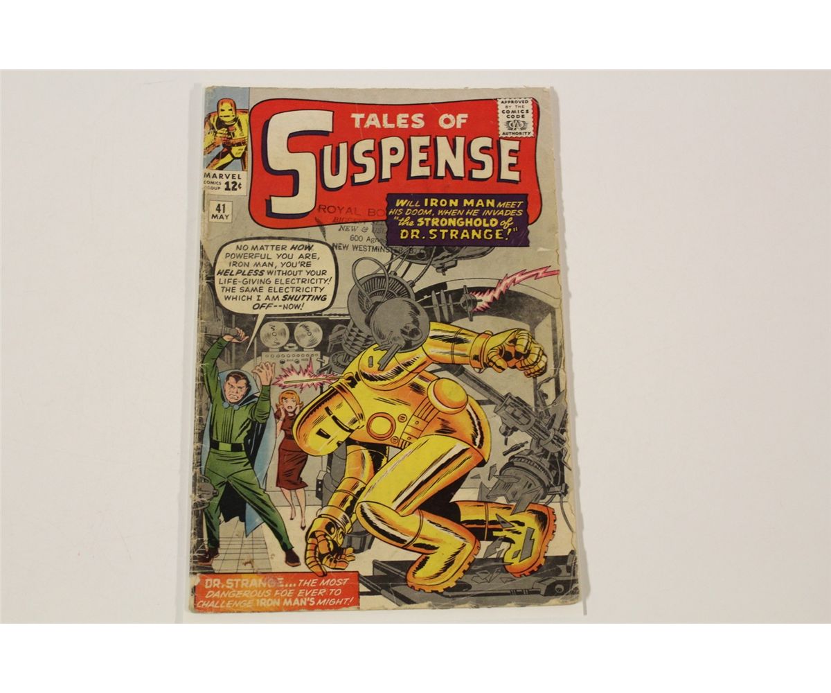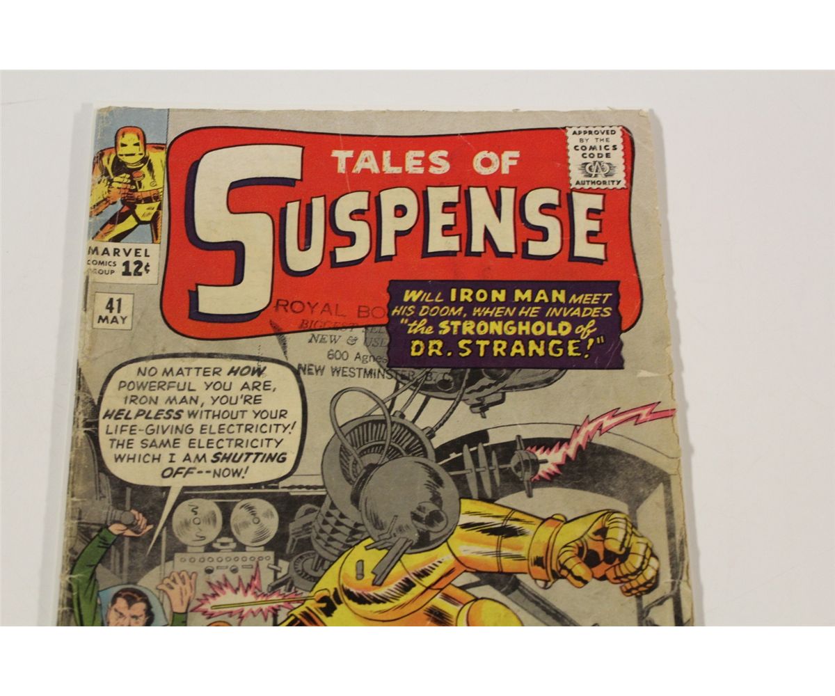 TALES OF SUSPENSE #41 (1963) 3RD APP. IRON MAN. LOWER GRADE, COVER & CF ATTACHED, NO PIECES OUT OF COVER, COMPLETE WITH EXCEPTION OF LARGE CORNER PIECE OUT OF ONE STORY PAGE. SOLID COPY.