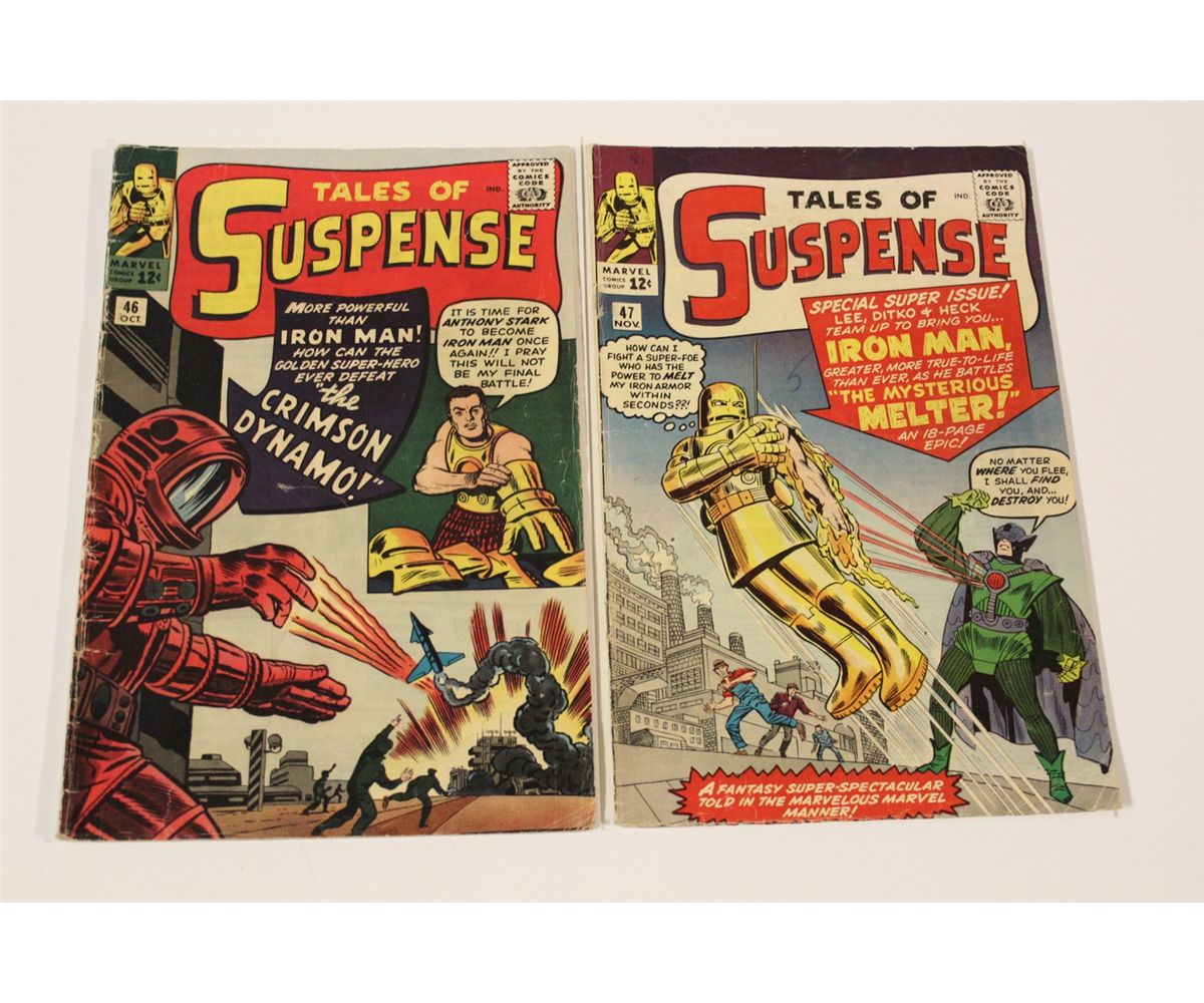 TALES OF SUSPENSE #46 & 47 (1963) 2 EARLY IRON MAN. #46 - 1ST APP. CRIMSON DYNAMO. SOLID LOWER MID TO MID GRADE COPIES, GLOSSY, TIGHT & SUPPLE. NICE BOOKS.