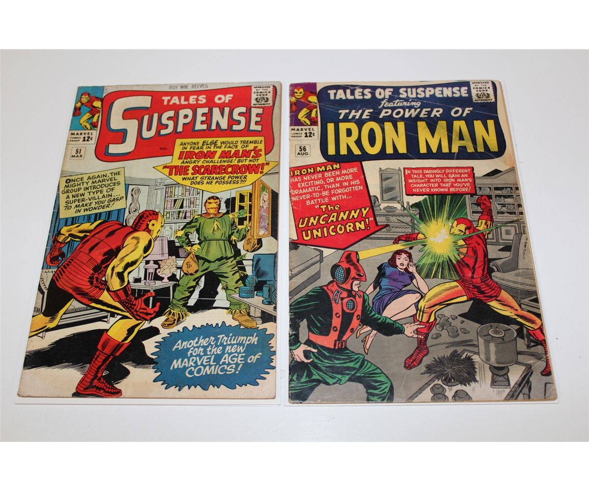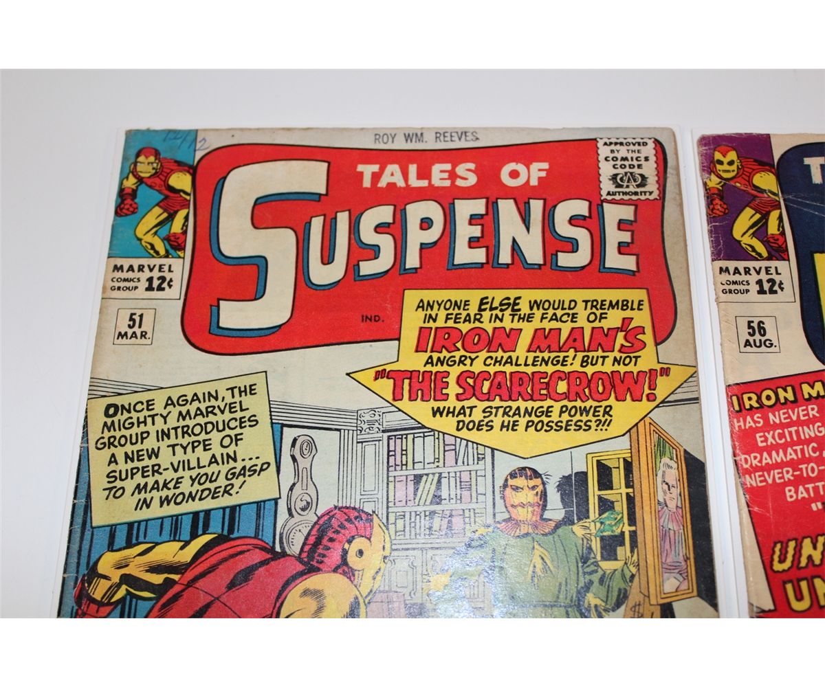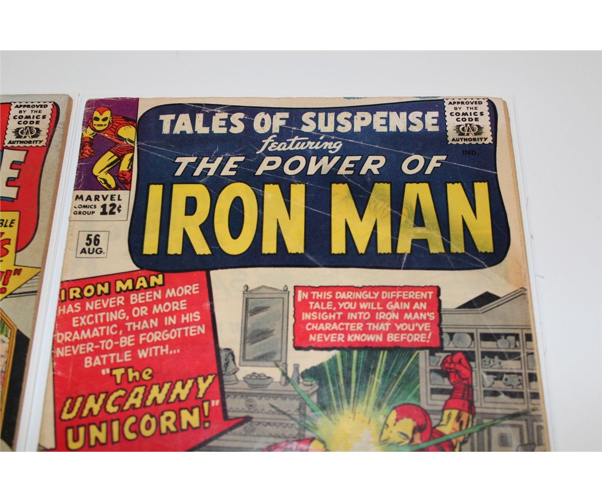 TALES OF SUSPENSE #51 & 56 (1964) #51 - 1ST APP. SCARECROW. LOWER MID GRADE TIGHT & SUPPLE. #56 - 1ST APP. UNICORN. LOW GRADE, 4.5 INCH TAPED TEAR ON COVER. BOTH COPIES HAVE COVERS ATTACHED, NO PIECES OUT, SOLID COPIES.